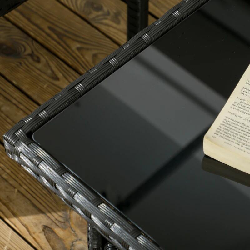 - Masa are un blat solid, fabricat din sticla securizata, care va oferi atat o nota de eleganta, cat si spatiu suficient pentru mancare, bauturi sau chiar decoratiuni interesante.