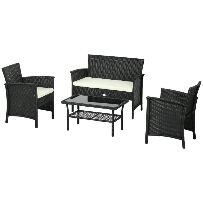 Set mobilier gradina/terasa, negru si bej, ratan sintetic, 1 masa, 2 scaune, 1 canapea, Loris