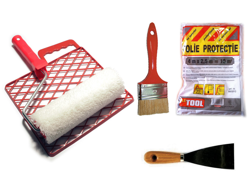 Set 5 gletiere profesionale, inox, 25, 40, 60, 80, 100 cm, suport, maner telescopic 1.2-2.2 m, rola gletuit, Ergolite