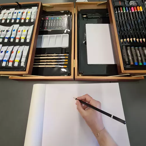 Set pictura si desen, Maaleo, trusa lemn, 85 piese