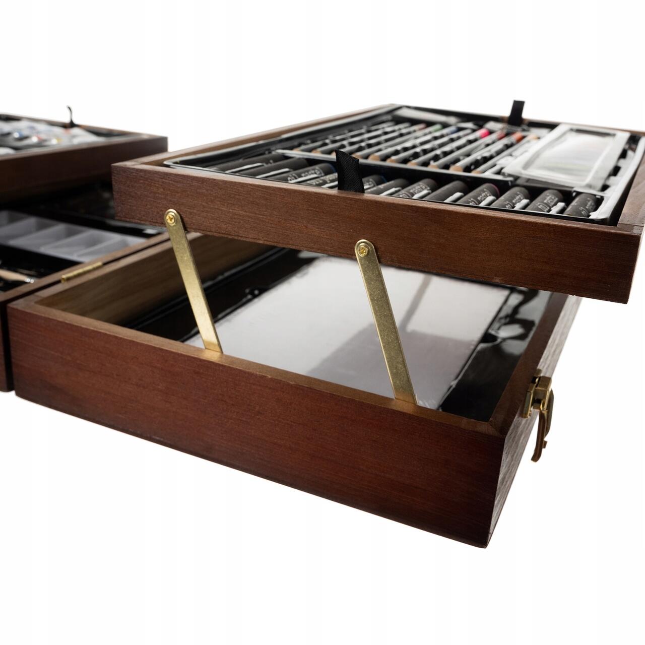 - Are o valiza practica din lemn, care este prevazuta cu inchidere si maner. Deoarece este organizat perfect in aceasta trusa practica, va ocupa mai putin spatiu de depozitare si poate fi stocat cu usurinta oriunde. Valiza are compartimente speciale care permit accesul rapid si usor la elementele individuale, protejandu-le si mentinand ordinea.