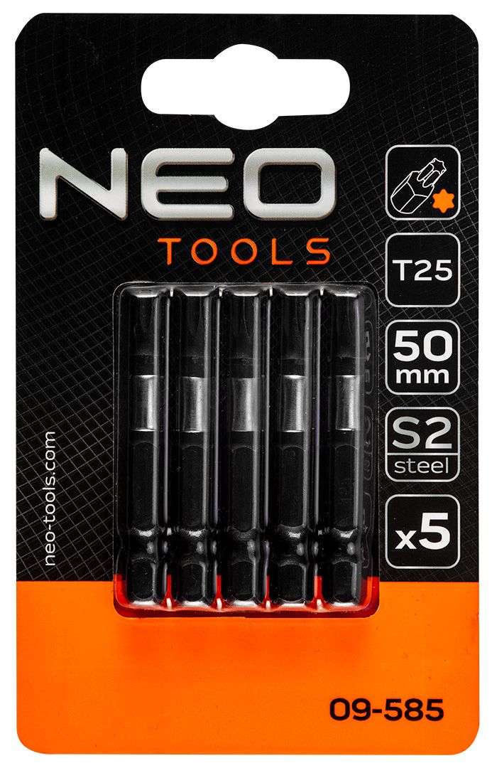 Set varfuri, biti, de impact, Torx, 1/4", 5 buc, T25x50 mm, Neo