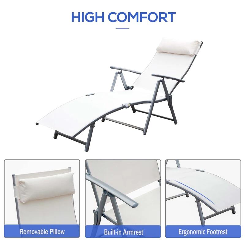 Sezlong pentru gradina, metalic, pliabil, cu spatar reglabil, crem, max 165 kg, 177x66x108 cm