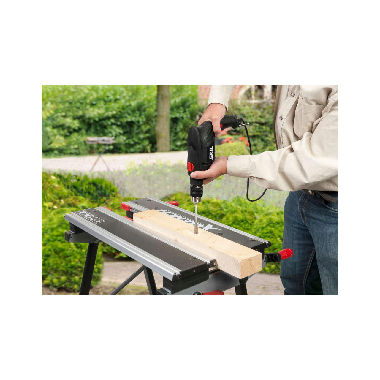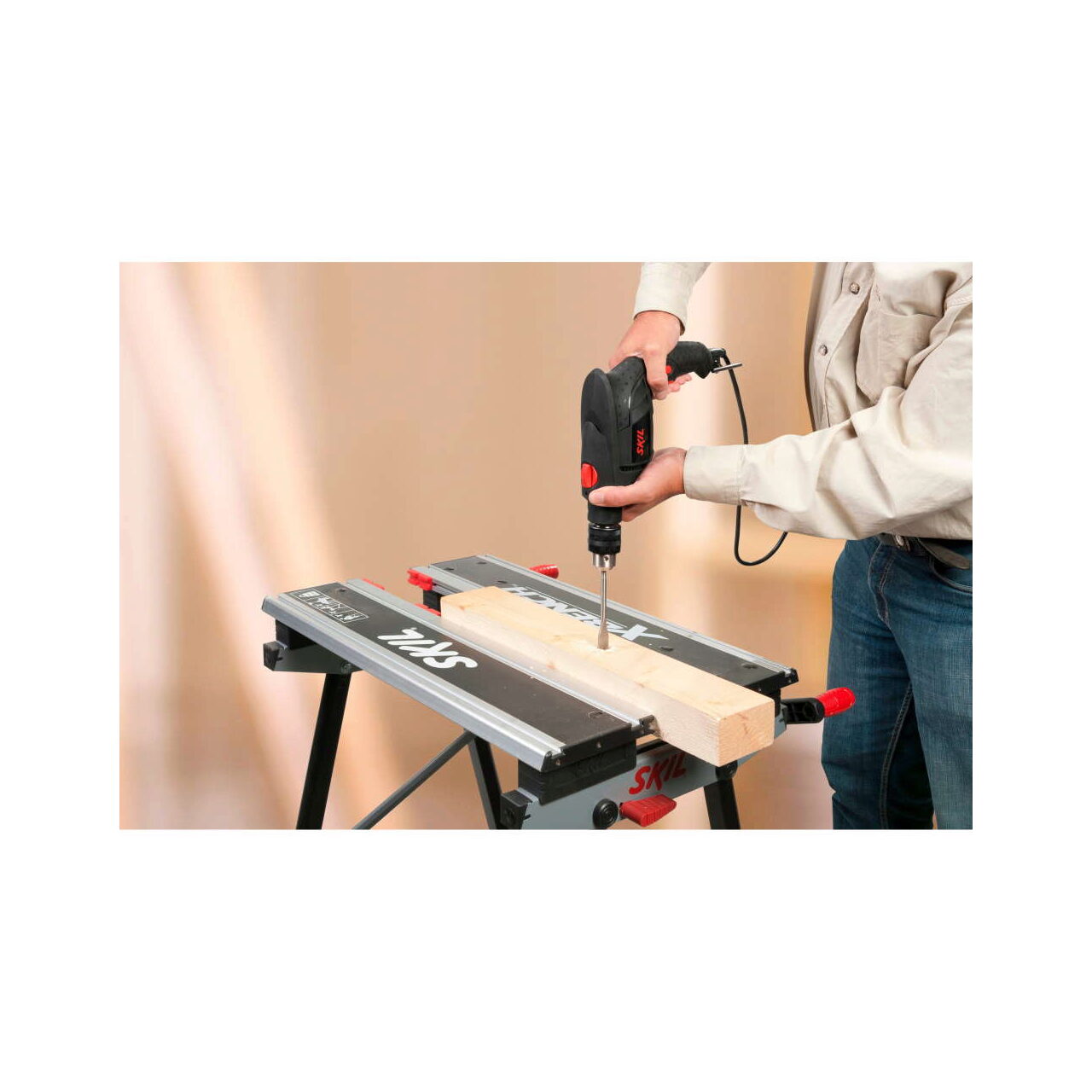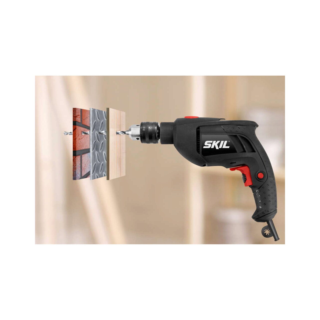 Mașina de găurit cu percuție SKIL 6002 are o construcție compactă, confortabilă și este echipată cu motor eficient de 500 W, care permite efectuarea lucrărilor de bricolaj. Este potrivită pentru toate lucrările de găurire uzuale. Turaţia variabilă cu viteză pre-selectabilă oferă caracterul multilateral şi controlul lucrărilor. Această maşină de găurit cu percuție este echipată cu mandrină cu cheie, care permite strângerea extrem de fermă a mandrinei, cu ajutorul cheii, evitând astfel scăparea burghiului în cursul lucrării. Această unealtă beneficiază de o serie de funcții practice, cum este blocarea butonului de acționare pentru funcționare continuă. Această maşină de găurit cu percuție se furnizează cu un set de trei burghie pentru zidărie, de 5, 6 și 8 mm.