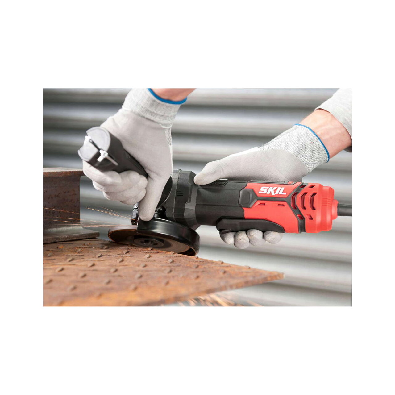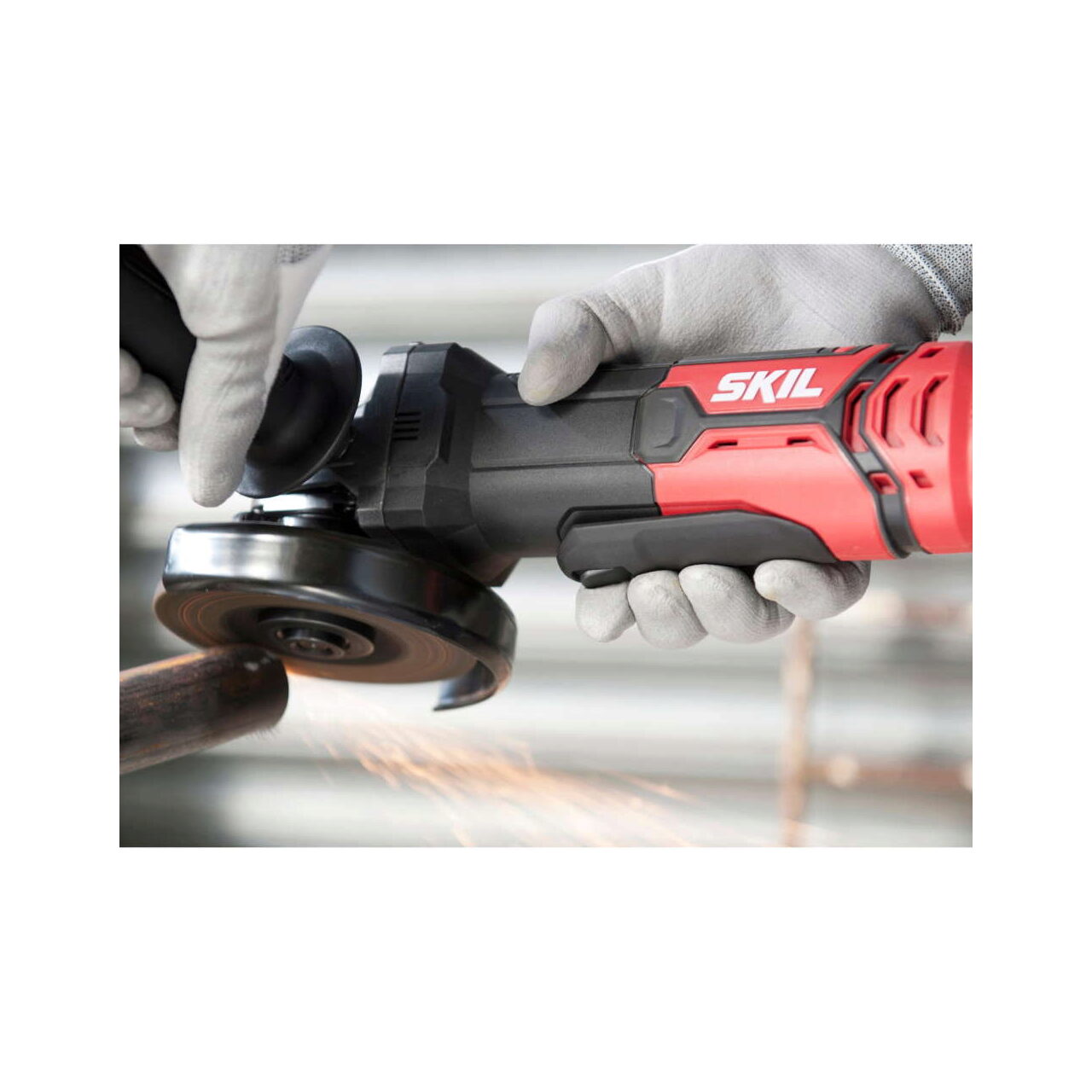 SKIL 9130 este un polizorul unghiular eficient compatibil cu discurile de 115 mm. Datorită motorului puternic de 720 W, această unealtă asigură pentru obţinerea celor mai bune tăieri, polizări şi îndepărtări a ruginii. Acest polizor unghiular are un comutator cu pârghie convenabil care oferă un control optim. Necesită o forţă de operare extrem de scăzută şi unealta se opreşte imediat după eliberarea comutatorului. Un sistem „Clic” vă permite să ajustaţi uşor apărătoarea, fără cheie, astfel că puteţi devia scânteile în orice direcţie dorită. Datorită suportului de cheie integrat din mânerul lateral, aveţi întotdeauna la îndemână o cheie pentru schimbarea uşoară a accesoriilor. Iar în funcţie de sarcina de executat, puteţi ajusta cu uşurinţă mânerul lateral în trei poziţii comode diferite. Acestă unealtă dispune de rulmenţi etanşaţi la praf şi roţi dinţate elicoidale care asigură un cuplu mai mare, o durată de viaţă mai lungă şi un nivel de zgomot mai scăzut în timpul lucrului. Carcasa metalică zveltă şi durabilă a angrenajului vă permite să manevraţi acest polizor unghiular cu uşurinţă, chiar şi atunci când lucraţi în spaţii înguste. Schimbarea sau înlocuirea discurilor este uşoară, datorită sistemului convenabil de blocare a axului.