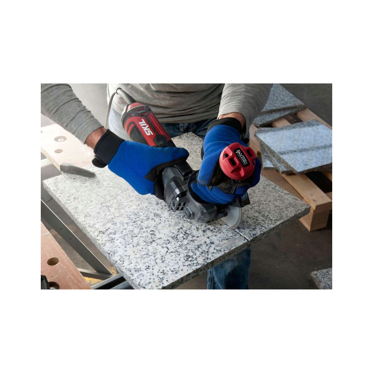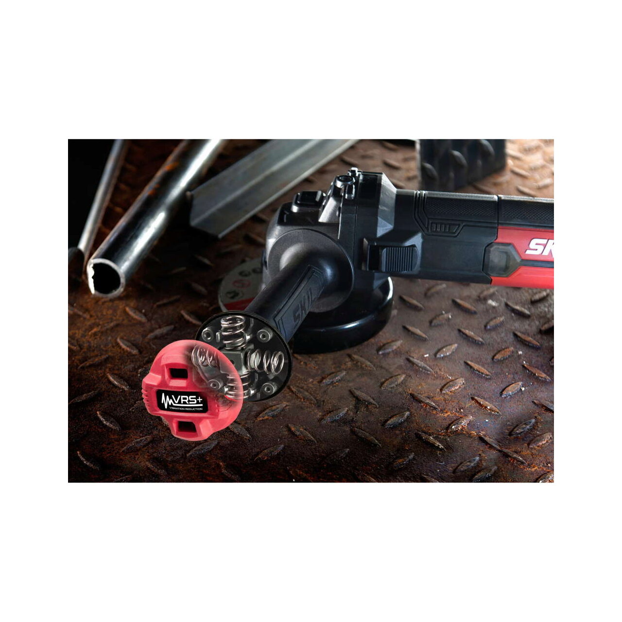 SKIL Masters 9151 este un polizorul unghiular durabil compatibil cu discurile de 125 mm. Datorită motorului puternic de 1010 W, această unealtă asigură pentru obţinerea celor mai bune tăieri, polizări şi îndepărtări a ruginii. O inovaţie superbă este „VRS+” SKIL, un sistem superior de reducere a vibraţiilor, în comparaţie cu sistemele tradiţionale. O contragreutate care se poate deplasa în toate direcţiile este construită în mânerul lateral al acestui polizor unghiular. Acest aşa numit absorber dinamic reduce vibraţiile în mod extraordinar. În funcţie de sarcina de executat, puteţi ajusta cu uşurinţă mânerul lateral în trei poziţii confortabile diferite. Această unealtă are o funcţie de pornire lină care reglează automat viteza iar comenzile electronice de putere constantă asigură eficienţa şi la sarcini mai mari. Un sistem „Clic” vă permite să ajustaţi uşor apărătoarea, fără cheie, astfel că puteţi devia scânteile în orice direcţie dorită. Pentru a întări performanţele sale extraordinare, acestă unealtă dispune de roţi dinţate elicoidale călite care asigură un cuplu mai mare, o durată de viaţă mai lungă şi un nivel de zgomot mai scăzut în timpul lucrului. Schimbarea sau înlocuirea discurilor este uşoară, datorită sistemului convenabil de blocare a axului. SKIL 9151 GB este furnizat într-o geantă robustă, împreună cu trei discuri de polizare.