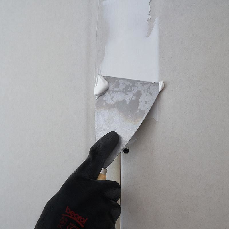 Spaclu din otel cu maner din lemn lustruit cu orificiu, 100 mm.
