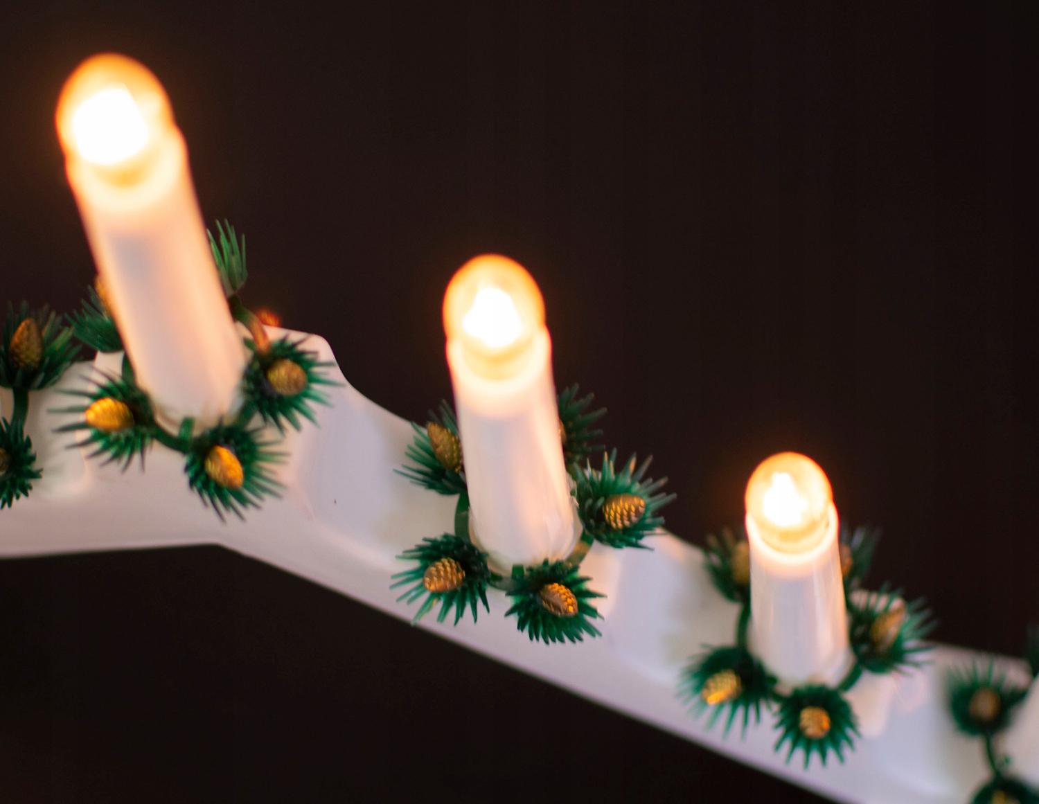 - Fiecare lumanare este decorata cu o coroana verde