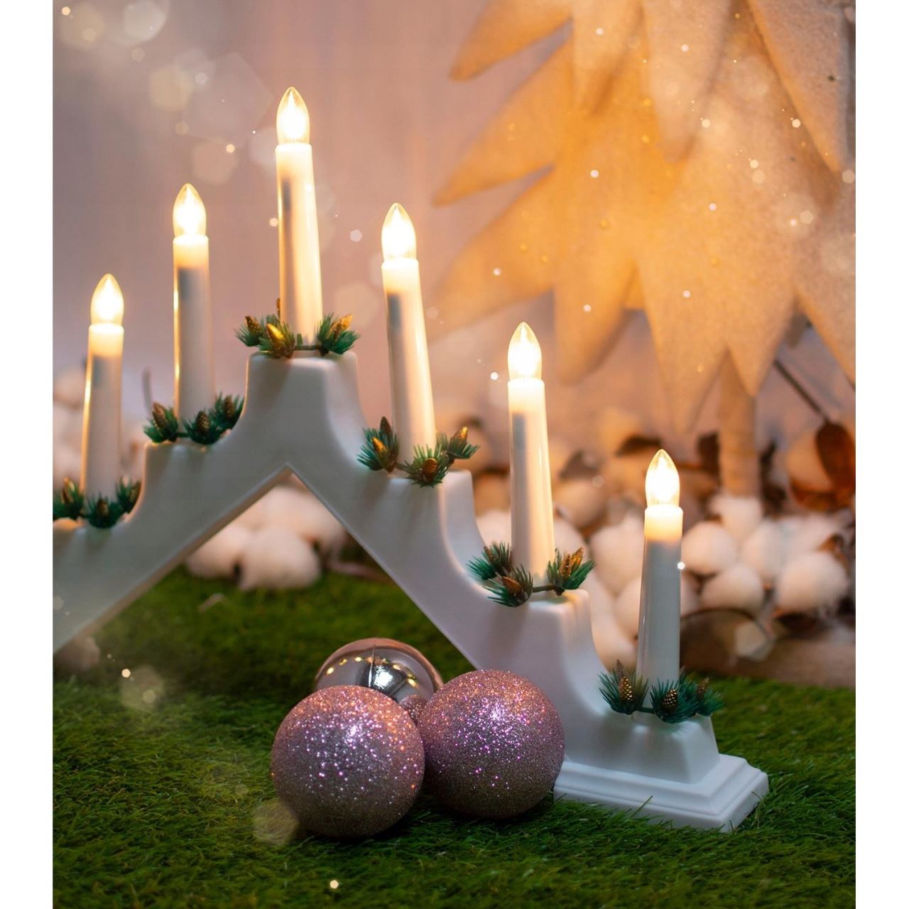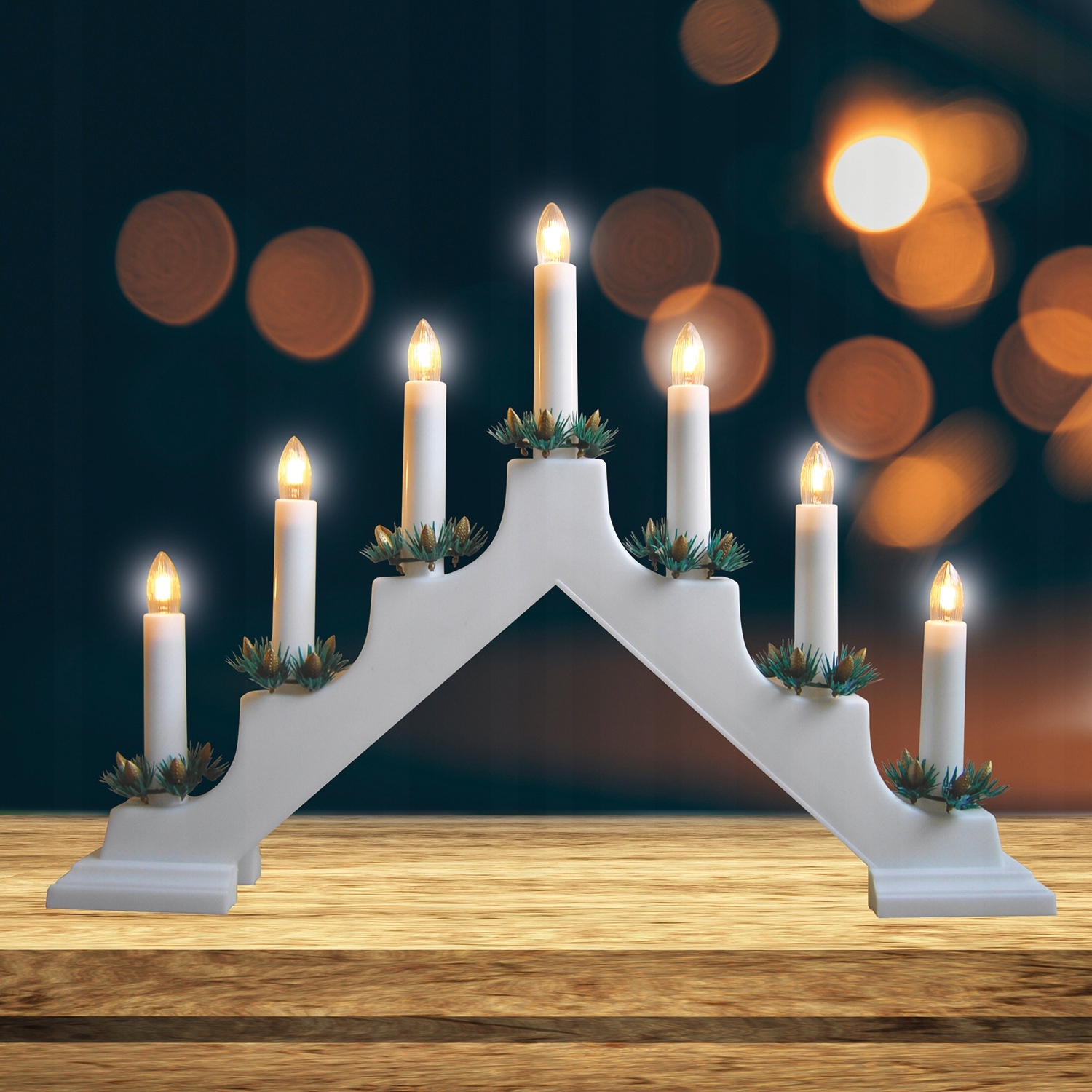 Suport 7 lumanari, 21 W, plastic, alb, 41x5.5x28.5 cm