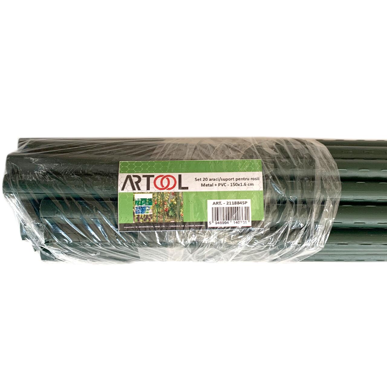 Set 20 araci/suport pentru rosii, castraveti, fasole, metal + PVC, verde, 150x1.6 cm, Artool
