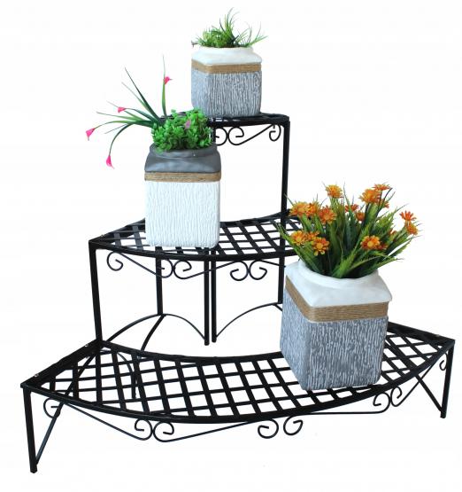 Suport de plante, gradina, pentru colt, in trepte, metalic, 60x60x60 cm