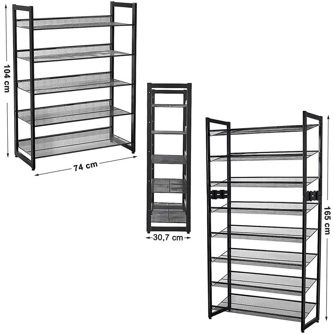 Suport depozitat incaltaminte, Songmics, 5 polite, metal, negru, 74x30.7x104 cm