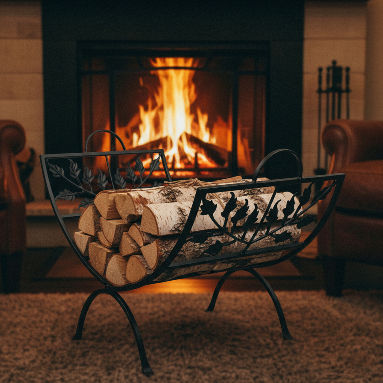Cos pentru lemne "Leaf Design" – Eleganta si functionalitate pentru semineu