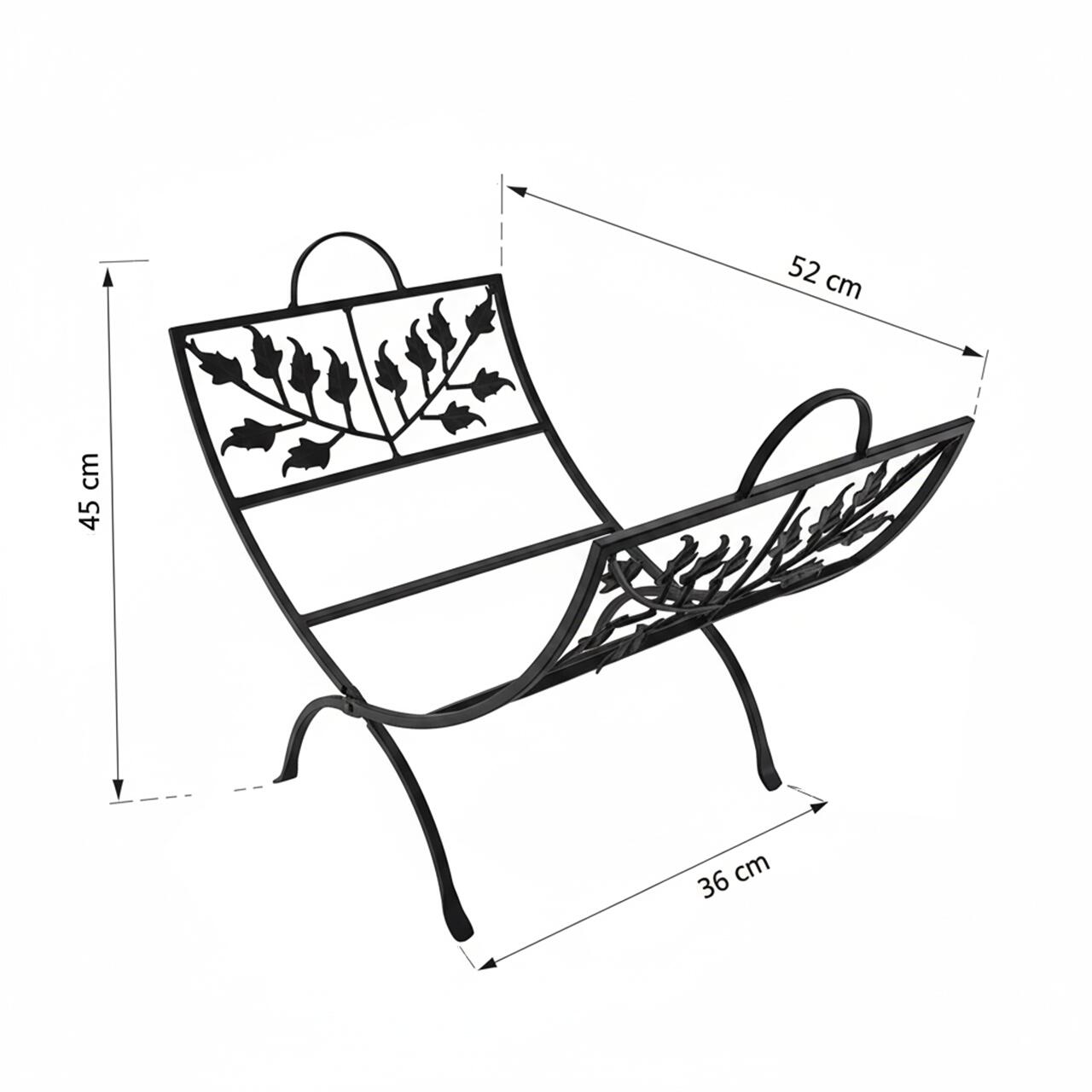 Transforma depozitarea lemnelor intr-un element decorativ deosebit cu acest suport metalic artizanal. Designul sau curbat, imbogatit cu motive vegetale, aduce un plus de stil oricarei incaperi cu semineu sau soba.