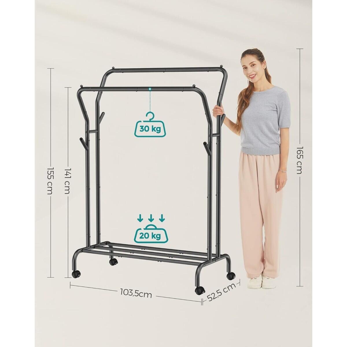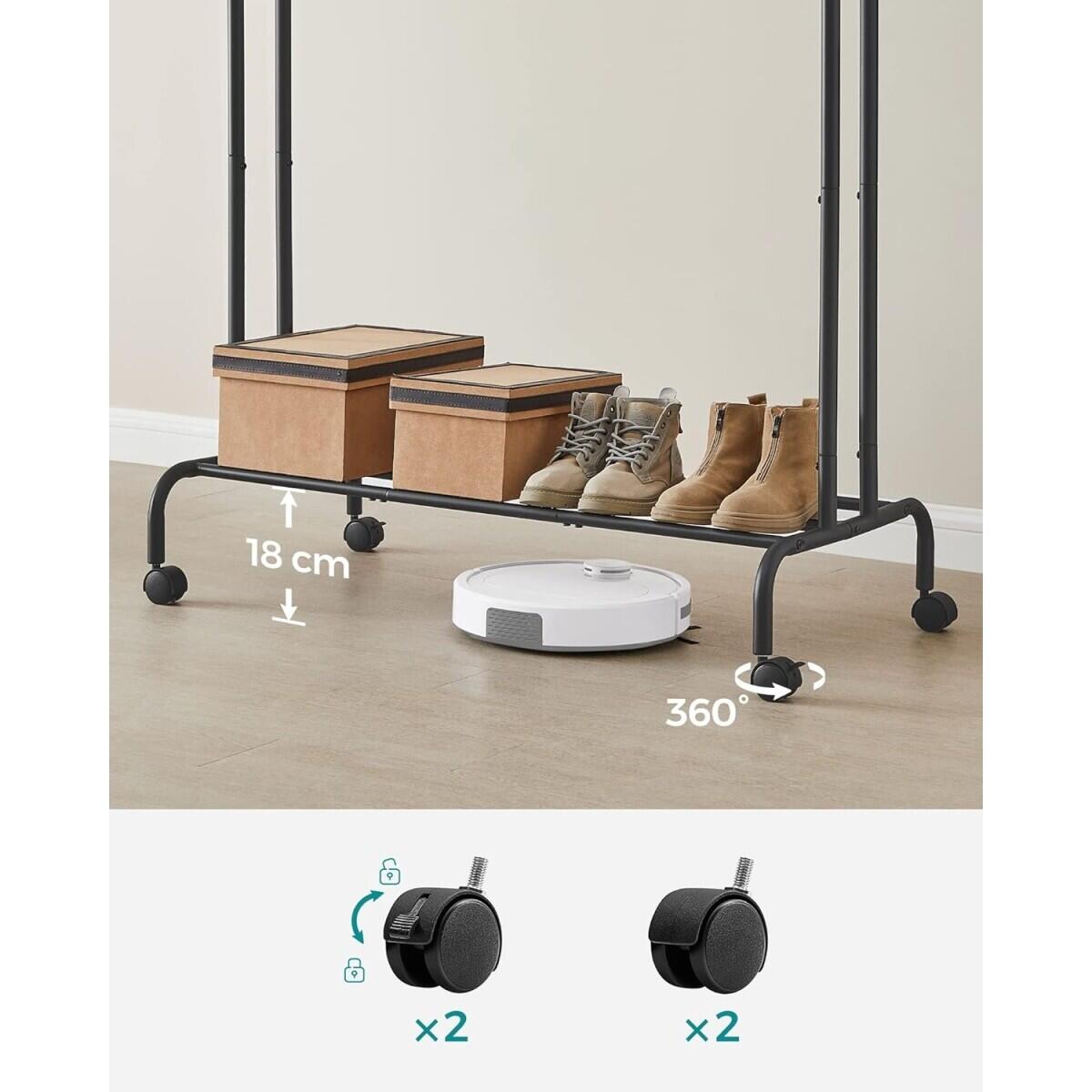 Suport mobil cu roti pentru haine, Artool, cu raft incaltaminte, otel, negru, max 100 kg, 103.5x52.5x155 cm