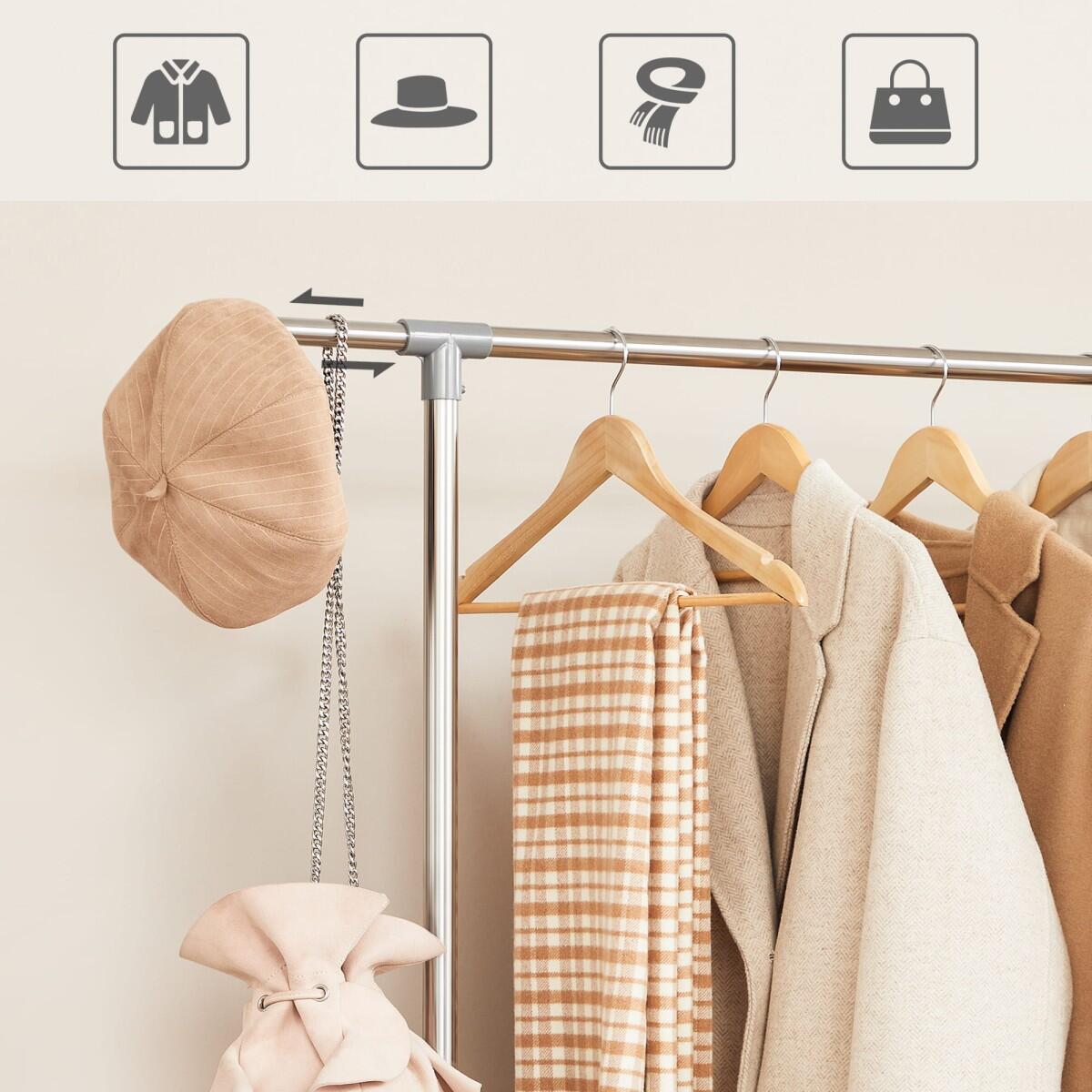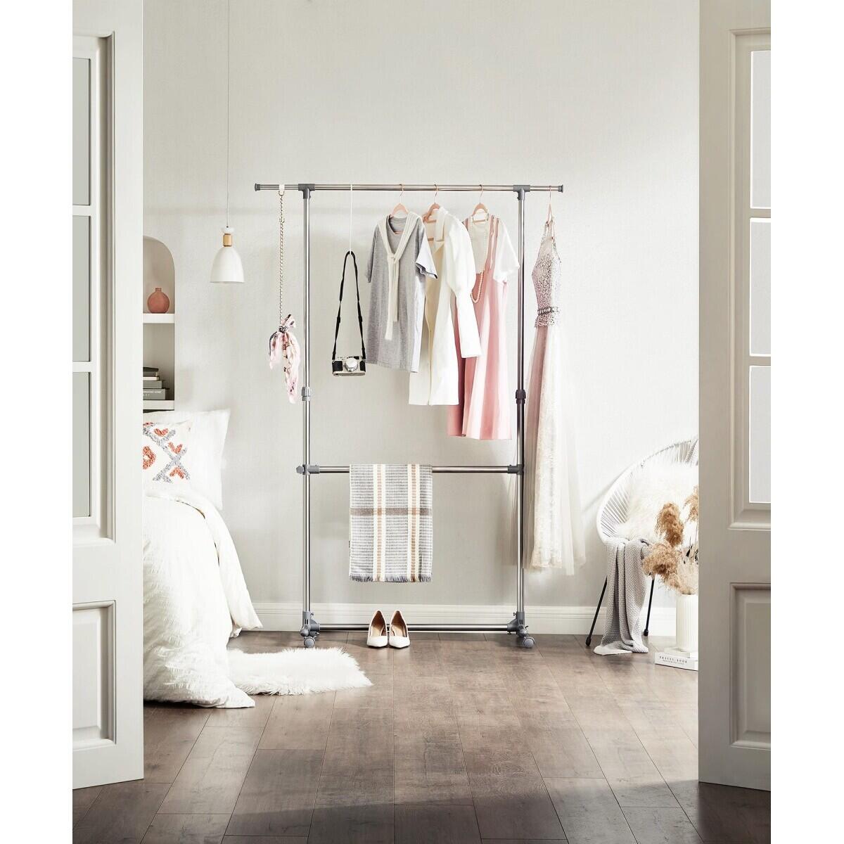 Suport mobil cu roti pentru haine, Artool, reglabil, inox, argintiu, max 50 kg, 101-165x49x113-198 cm