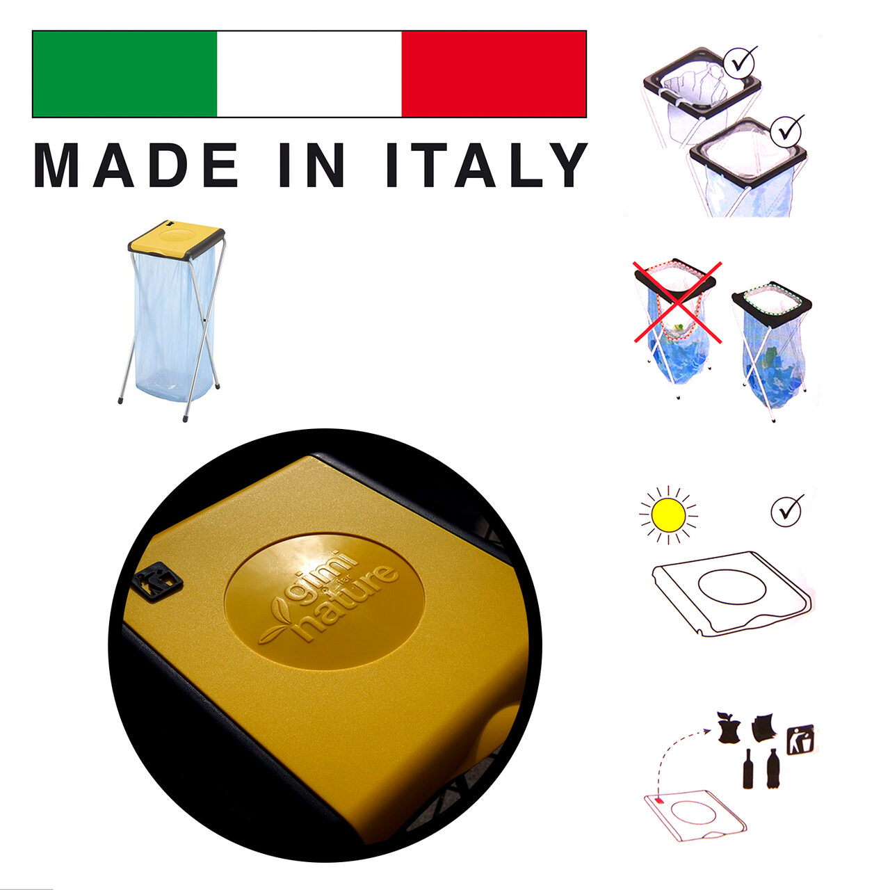 - PRACTIC de folosit in gospodarie pentru a fixa sacul in care se poate aduna selectiv gunoiul.