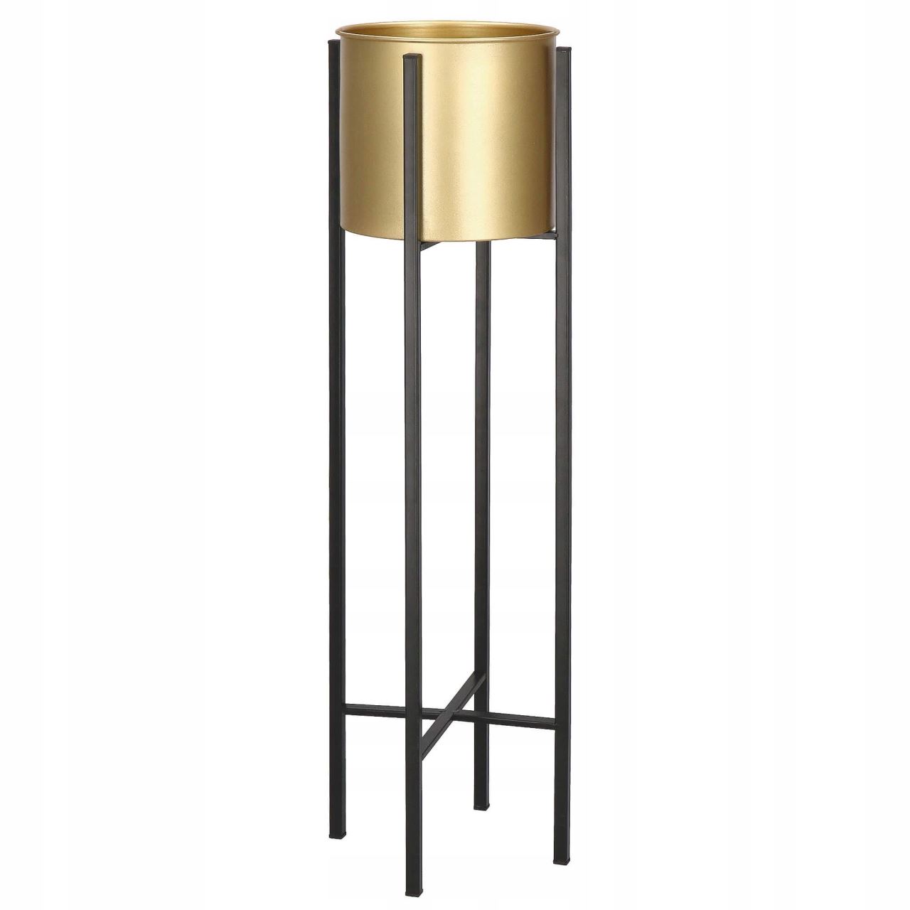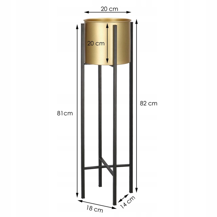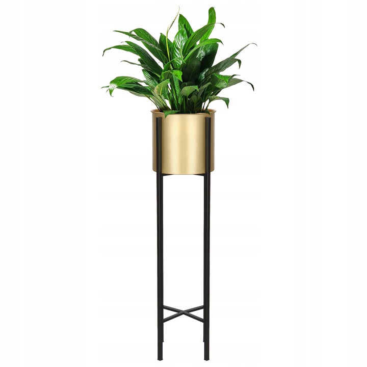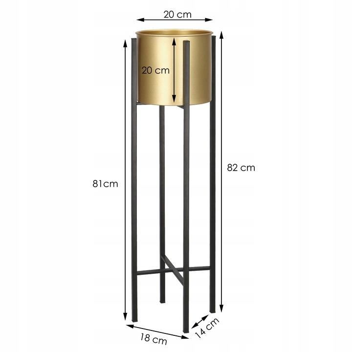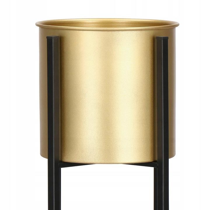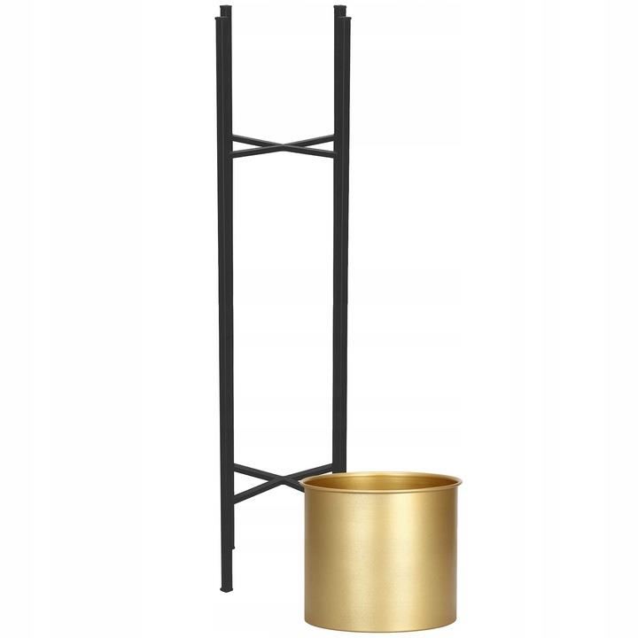 Suport pentru ghivece de flori, rotund, metalic, negru si auriu, 18x82 cm, Springos