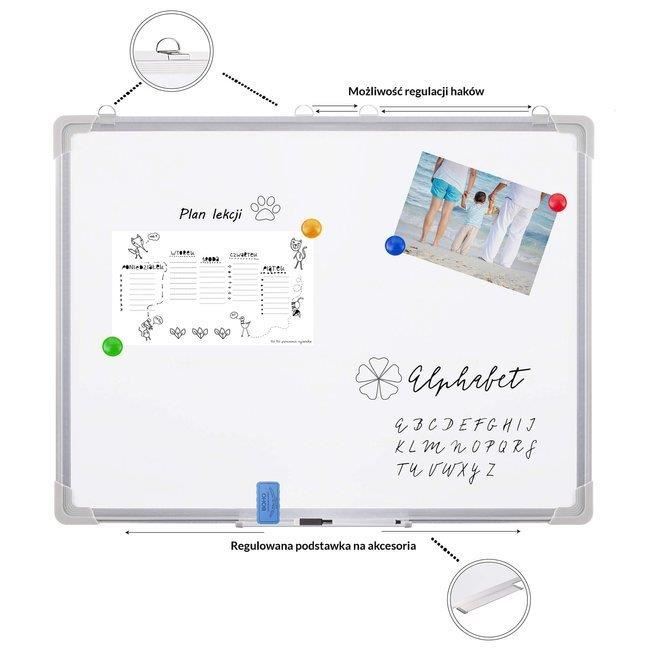 Suprafata alba, magnetica, va permite sa scrieti pe ea cu markere care pot fi sterse si sa atasati note sau un orar pe ea cu magneti .
