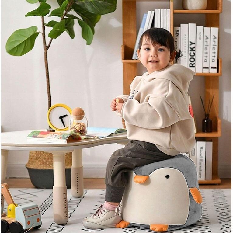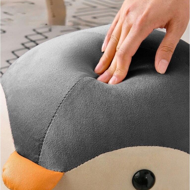 Taburet pentru copii, model pinguin, textil, lemn, gri si alb, max 50 kg, 28x34 cm, Chomik
