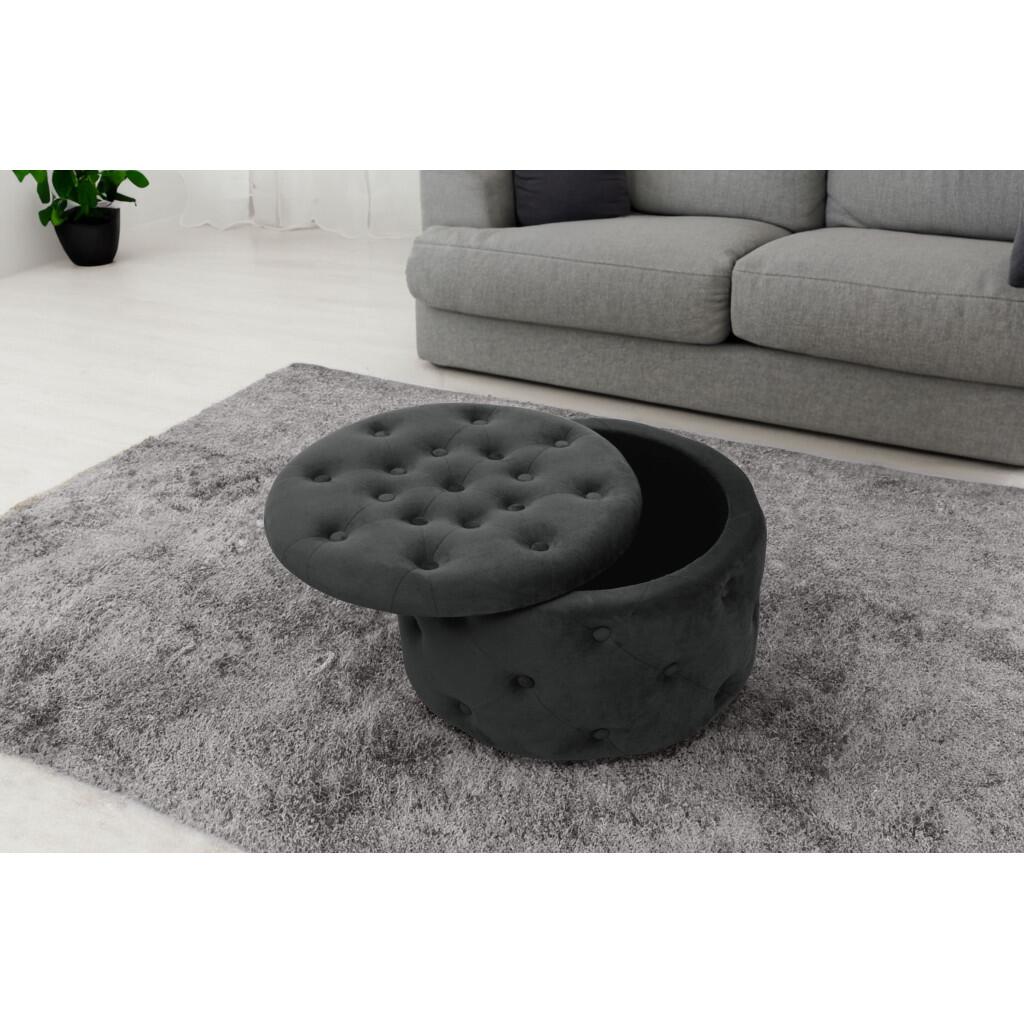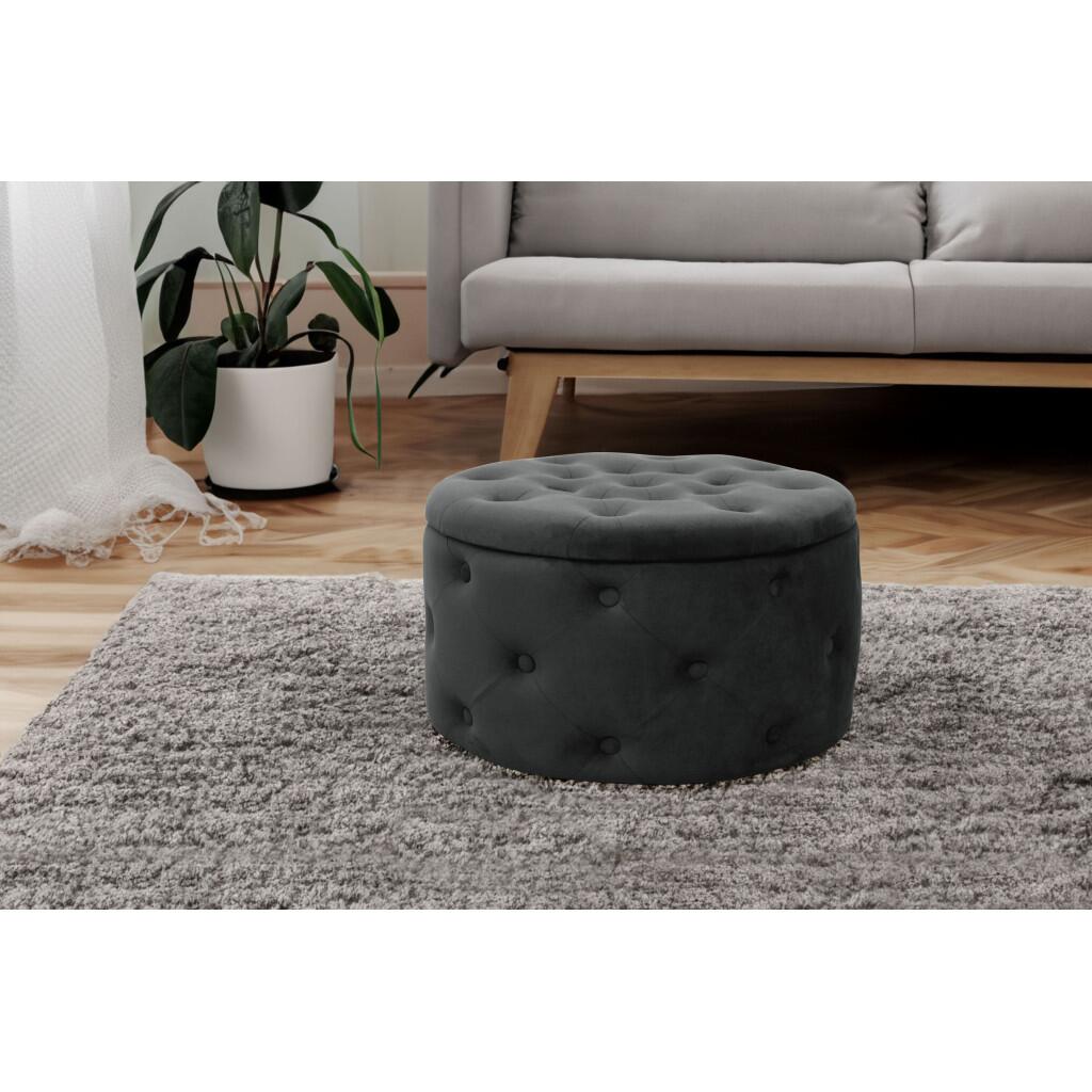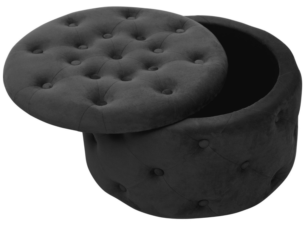 Taburet, rotund, cu spatiu depozitare, catifea, negru, max 80 kg, 55x30 cm, Alia, Akord