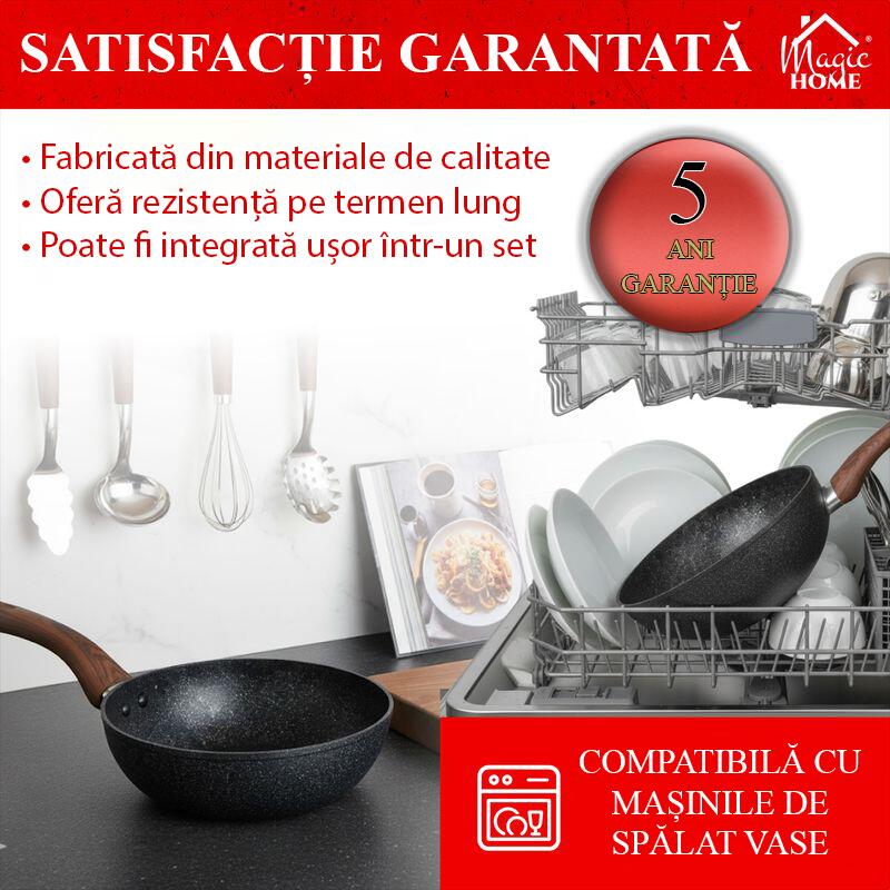 Tigaie tip Wok cu maner de lemn, 28 cm, Magic Home