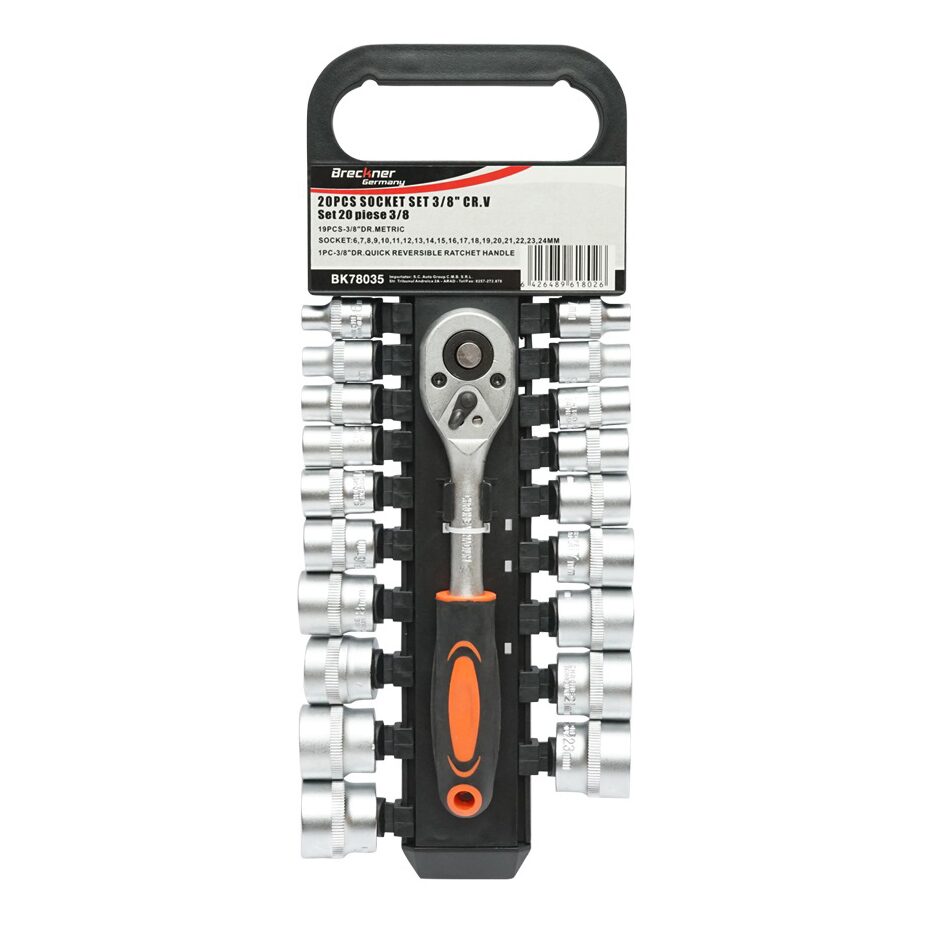 Trusa chei tubulare, 3/8", metrice Cr-V, cu clichet reversibil, 20 piese, Breckner Germany