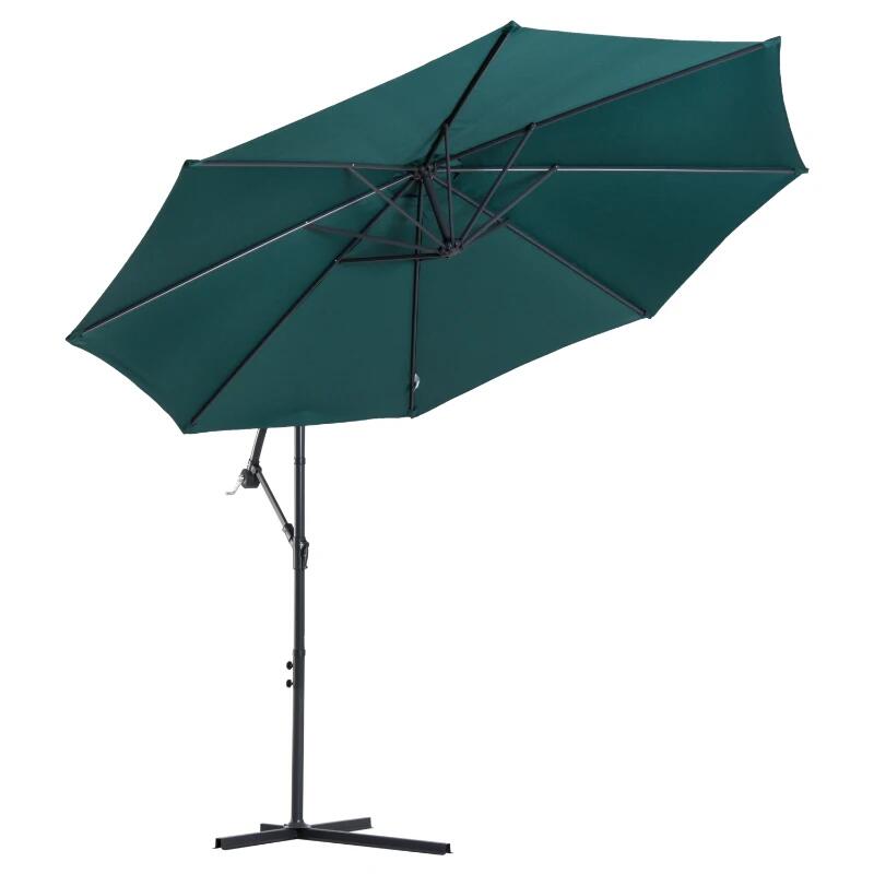 Umbrela gradina/terasa, articulatie tip banana, cu manivela, verde, 300 cm