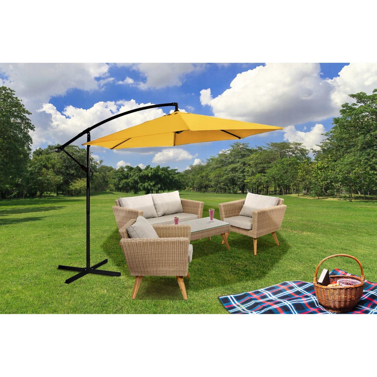Umbrela gradina/terasa, articulatie tip banana, galben, 300 cm