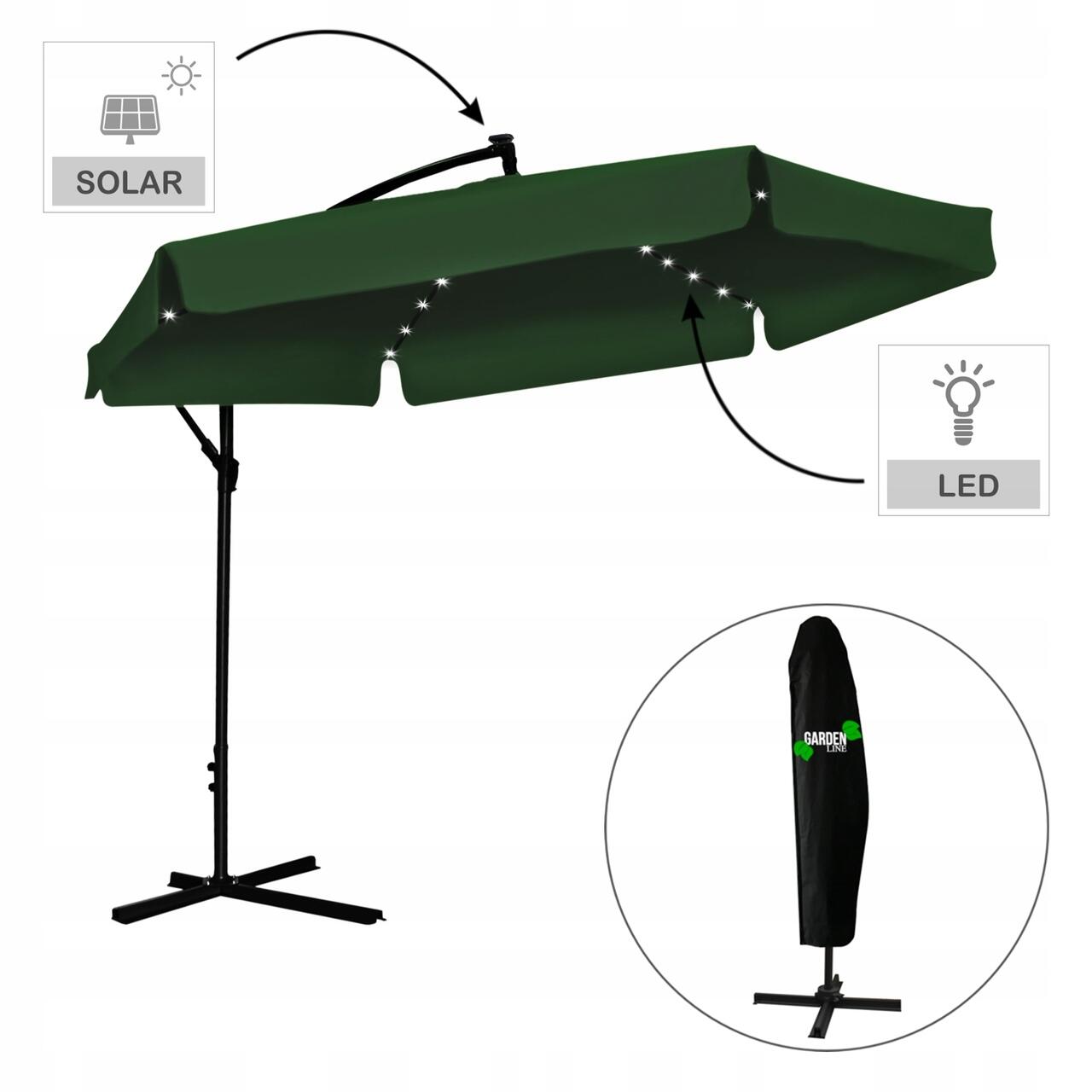 Umbrela gradina/terasa cu LED, Chomik, articulatie tip banana, verde, 300 cm