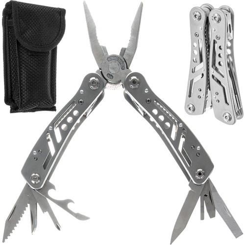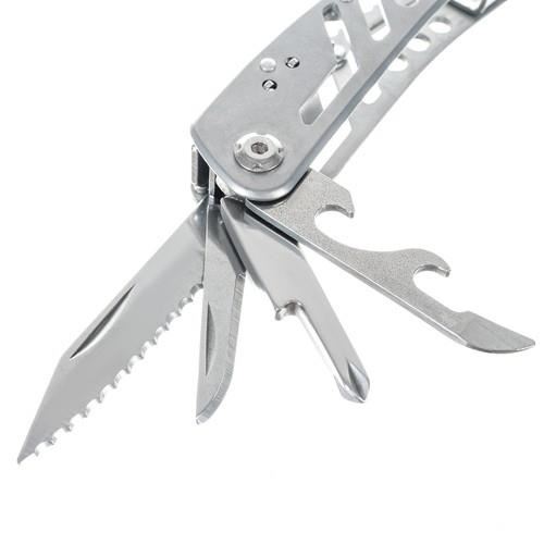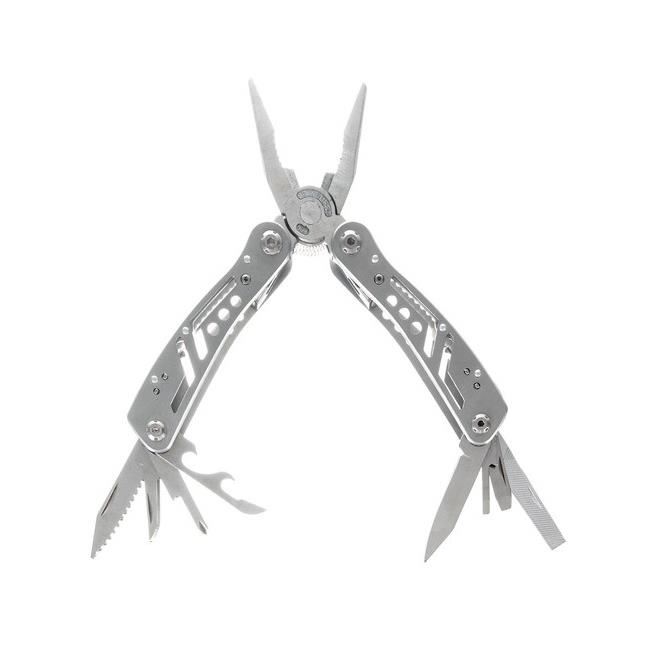 - 13 in 1 - produsul are incorporate pana la 13 instrumente diverse, datorita carora este ideal pentru supravietuire, pescuit, drumetii, camping, corturi, la locul de munca sau pur si simplu in timpul gradinaritului. Multifunctionalul vine cu un cutit, lama de fierastrau, cleste, deschizator de sticle, deschizator de conserve, surubelnita, cutit de buzunar, cleste, taietor si multe altele.