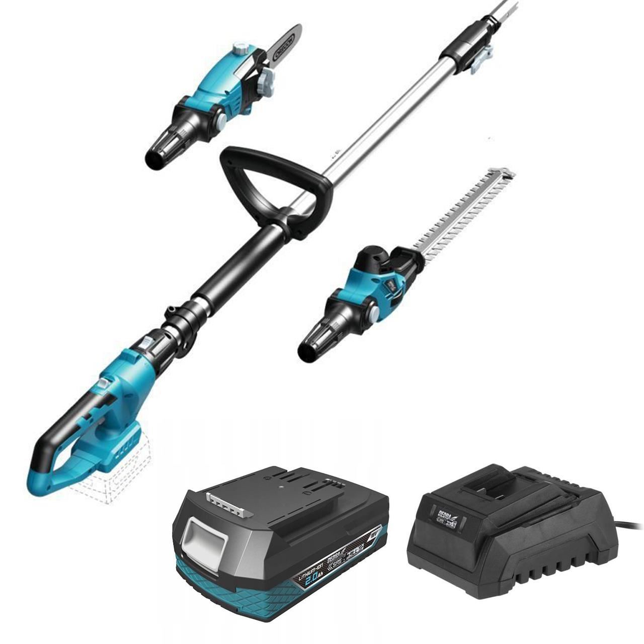 Unealta dublu functionala, drujba, fierastrau gard viu, cu acumulator 2 Ah, incarcator 18 V Li-ion, SAS+ALL, Dedra