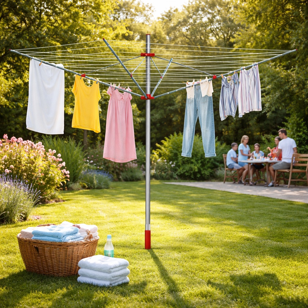 Sfat de intretinere: Pentru a prelungi viata firelor, strangeti uscătorul atunci cand nu este utilizat. Sistemul de pliere tip umbrela protejeaza sforile de praf si murdarie.