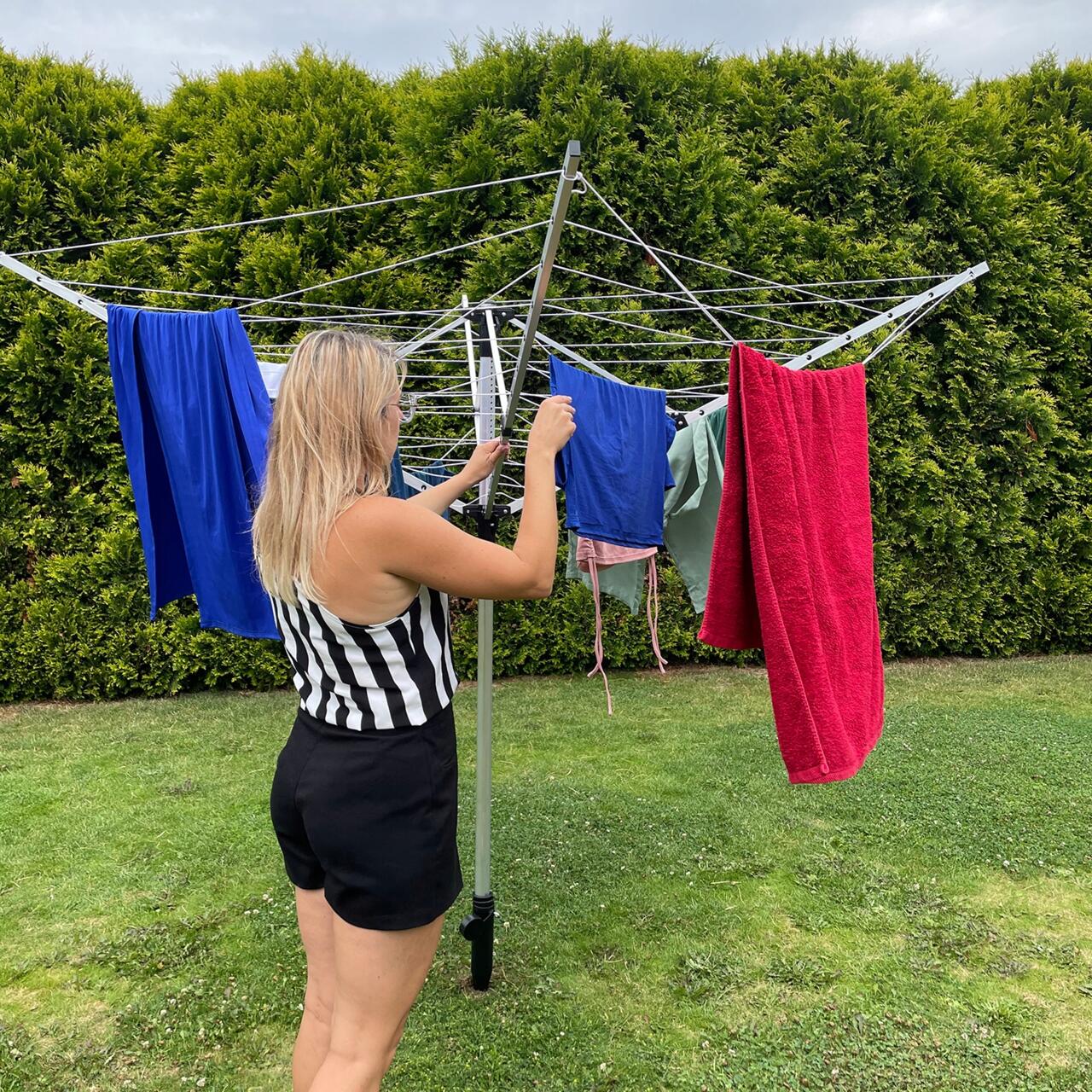 - A fost conceput special pentru utilizare in exterior. Hainele si lenjeria uscate afara vor capata un miros frumos si beneficiaza de aerisire maxima. Se vor usca intr-un timp mai scurt si nu vor influenta nivelul de umiditate.