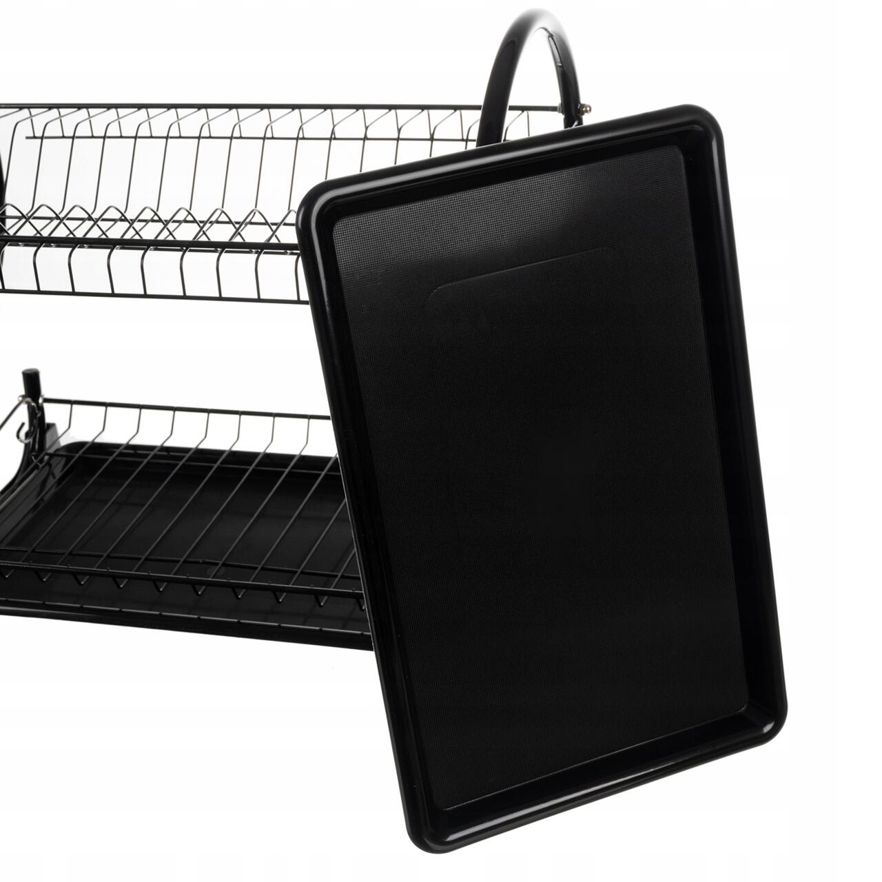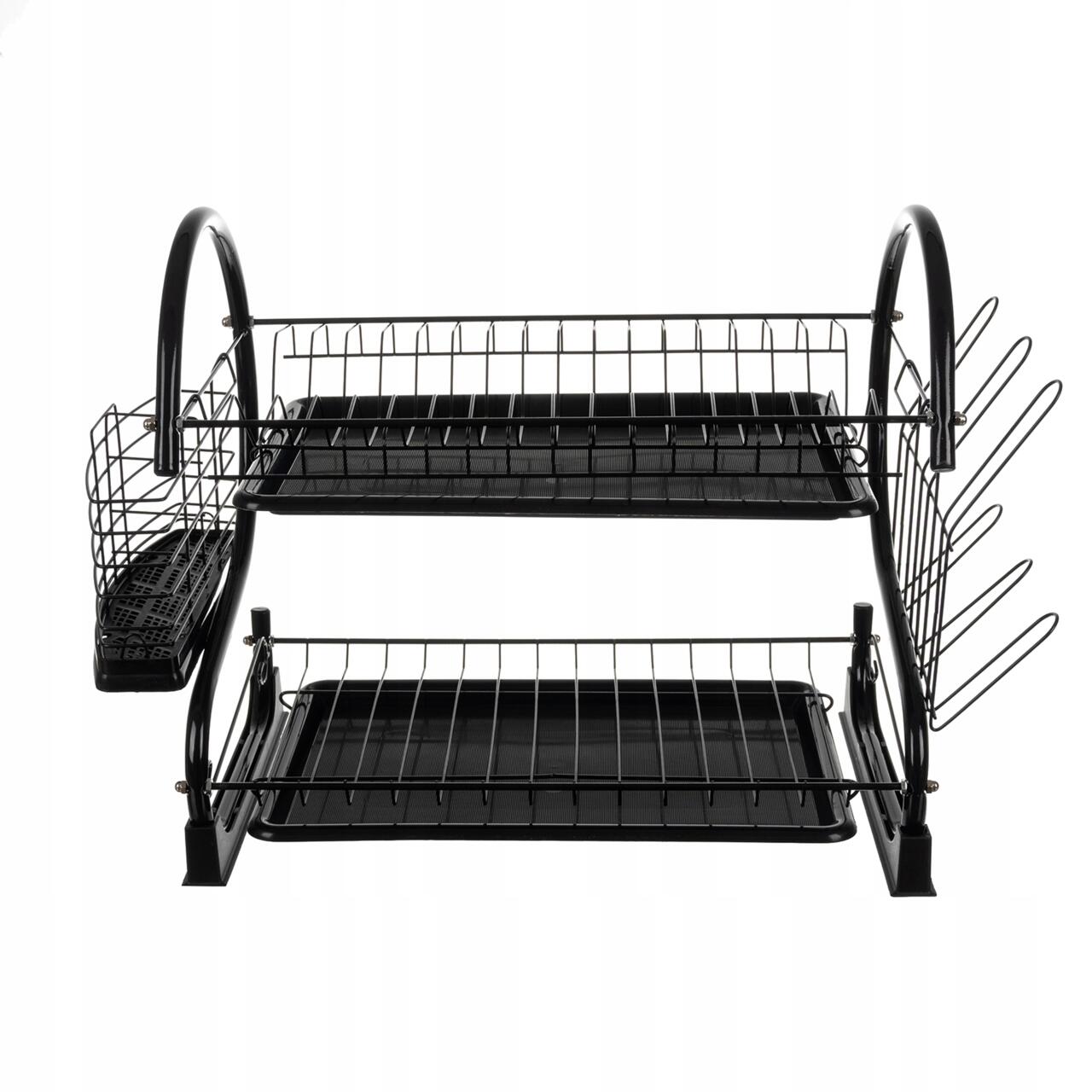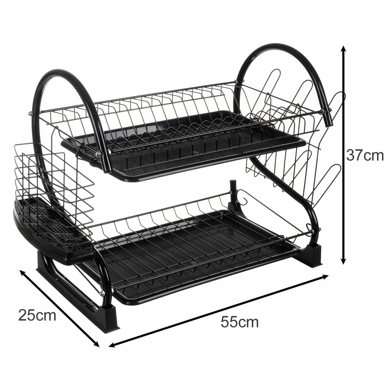 Uscator vase, scurgator de bucatarie, Ruhhy, metal si plastic, negru, suport tacamuri si pahare/cani, 2 polite, 55x25x37 cm