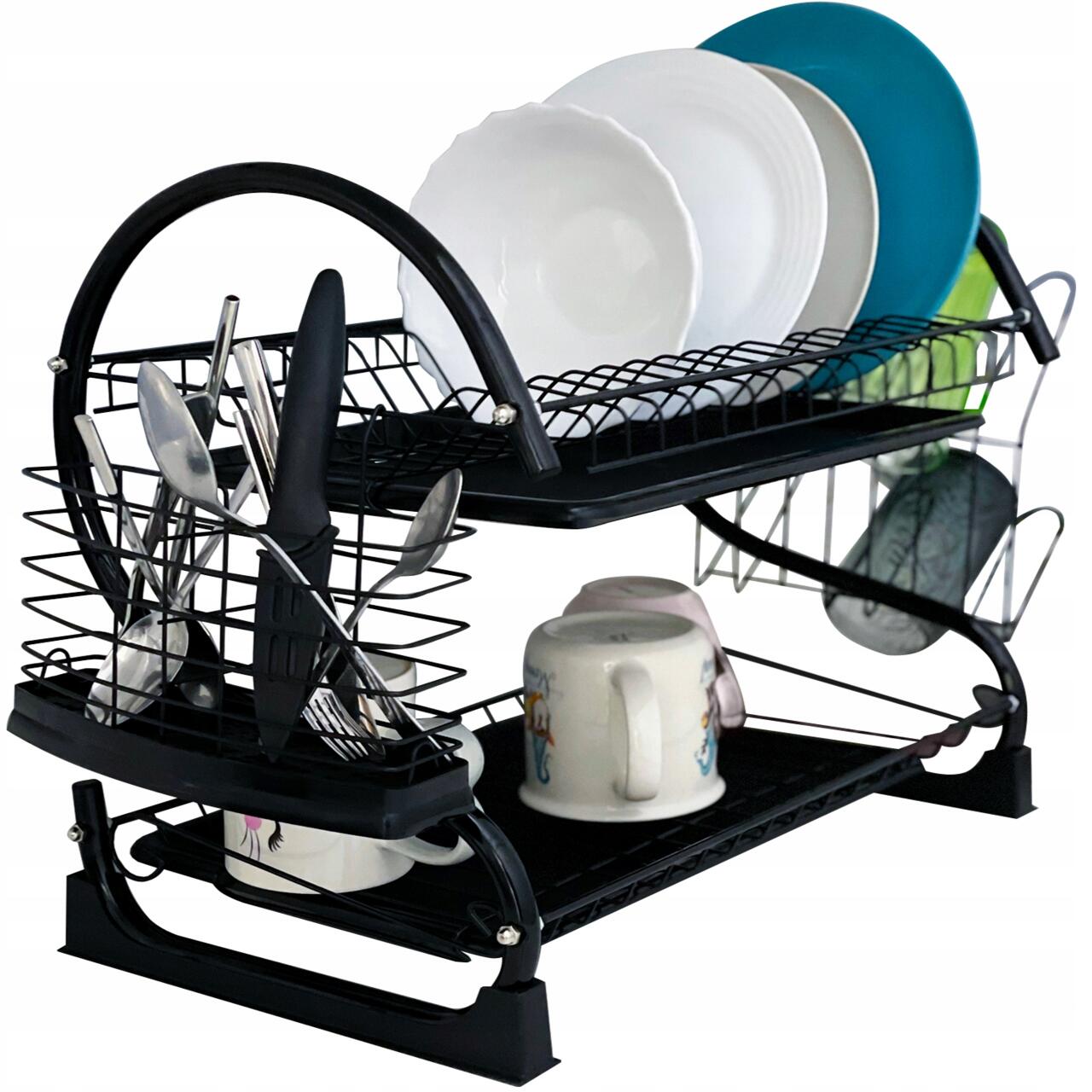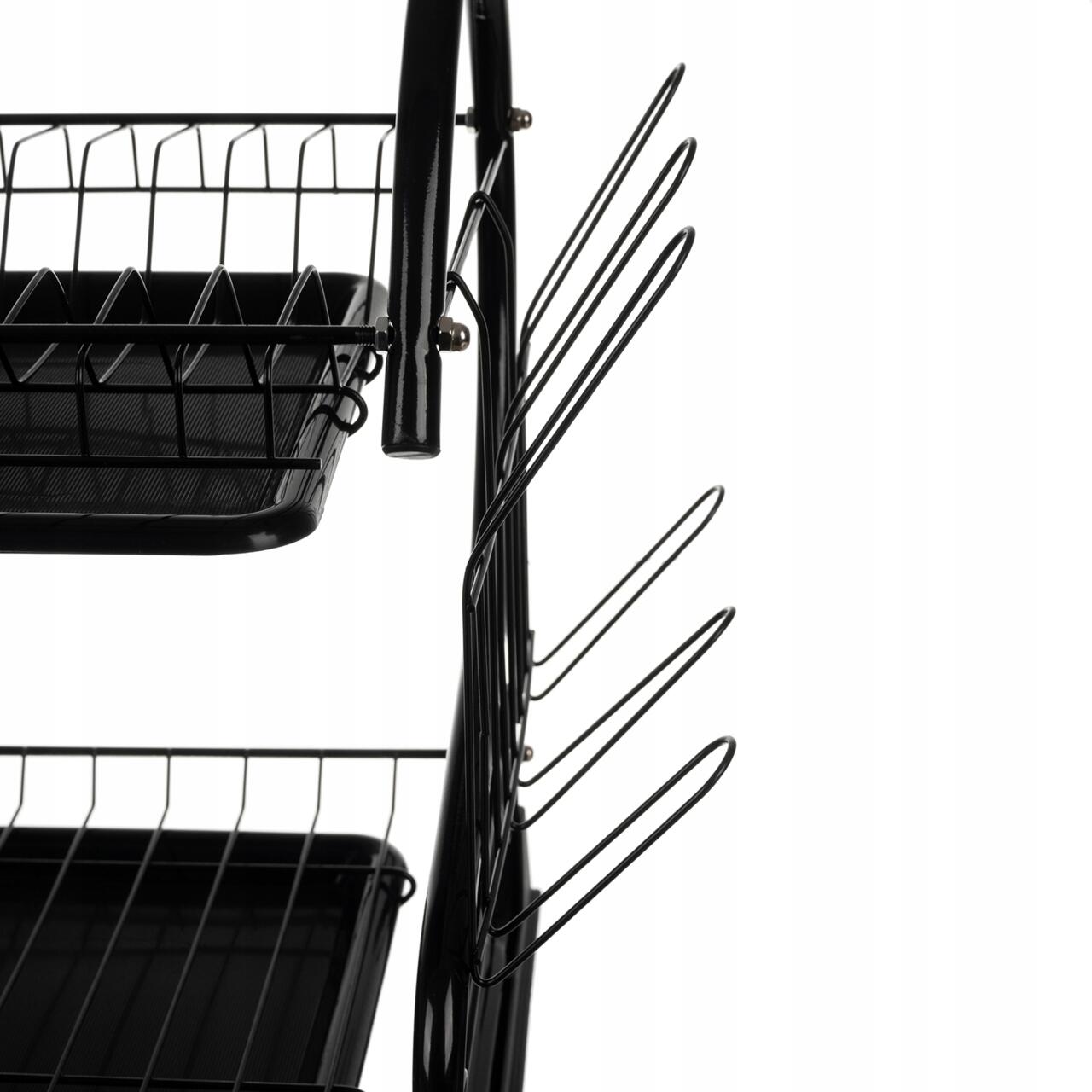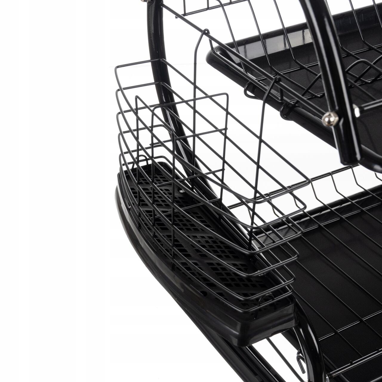 Uscator vase, scurgator de bucatarie, Ruhhy, metal si plastic, negru, suport tacamuri si pahare/cani, 2 polite, 55x25x37 cm