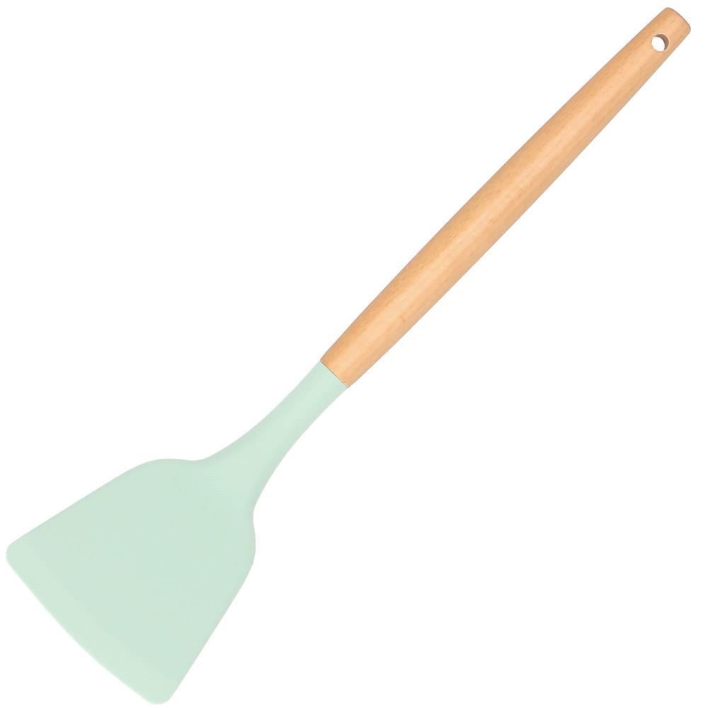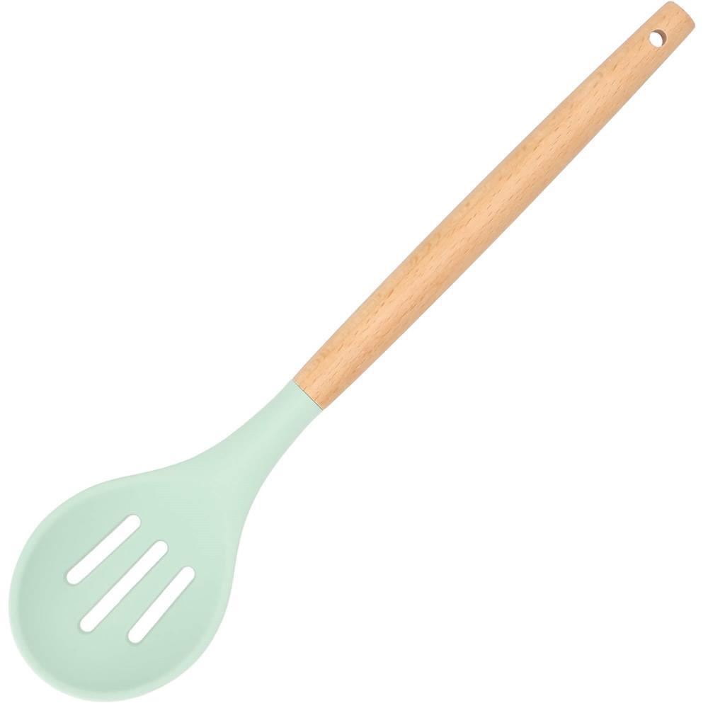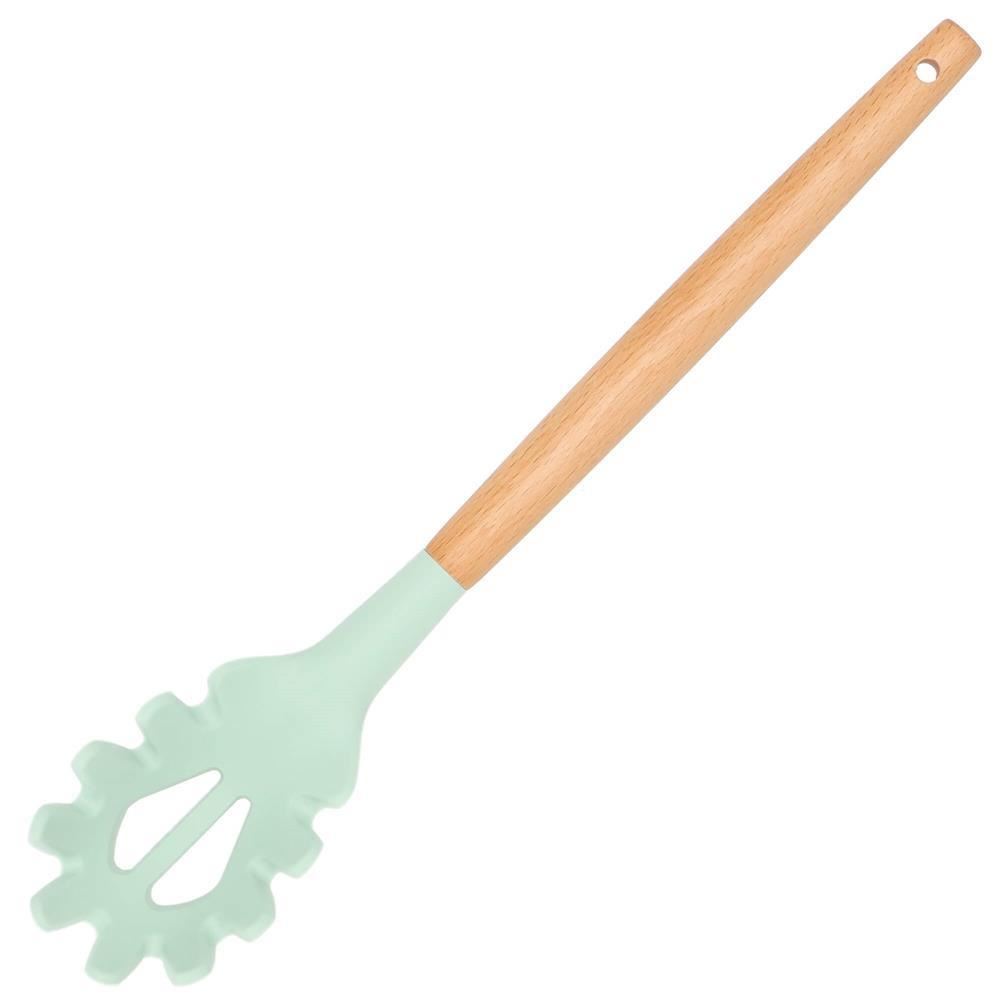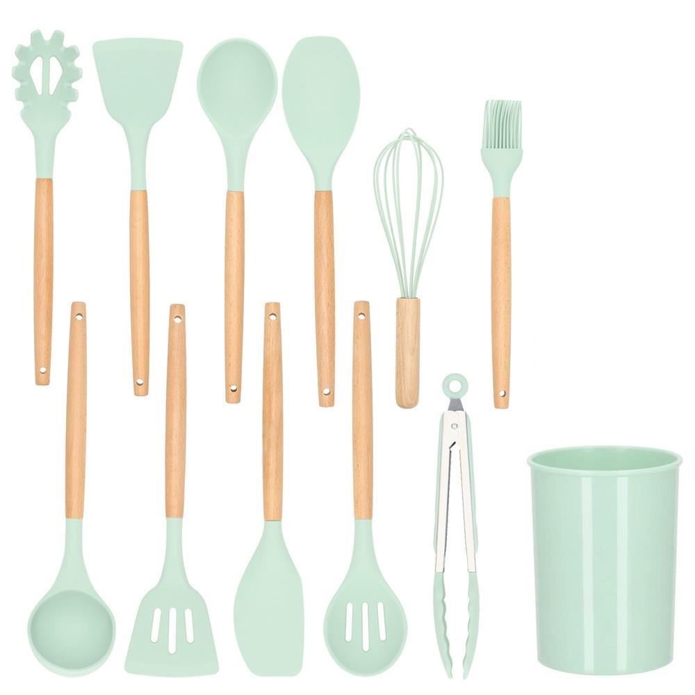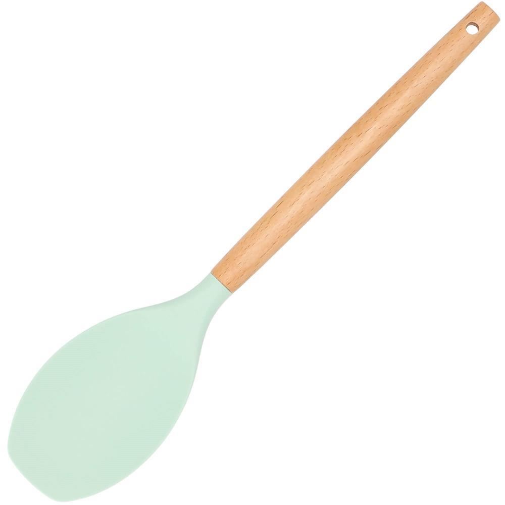 Ustensile bucatarie, silicon si bambus, menta, set 12 piese, Springos