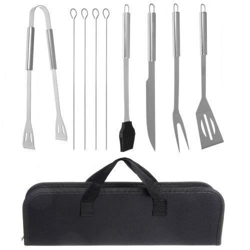 Ustensile pentru gratar, barbeque, inox, geanta transport, set 9 piese, 35 cm, Kaminer