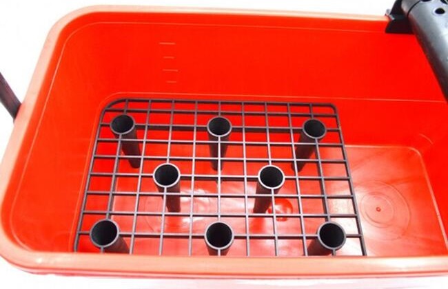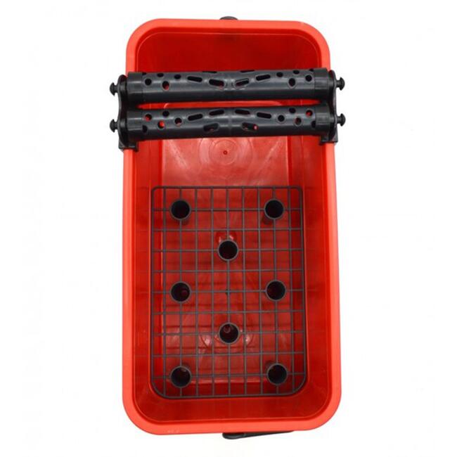 - Galeata a fost dotata cu o grila care permite indepartarea excesului de apa de pe unelte si role pentru stoarcerea buretilor si a lavetelor.