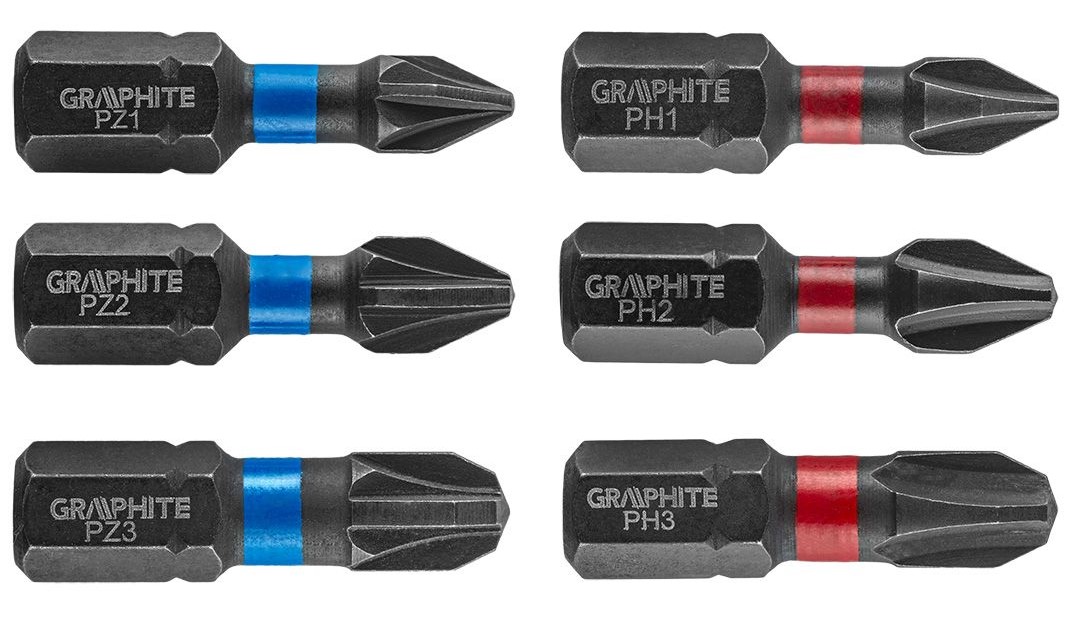 Varfuri, biti, de impact, set 6 buc, PH1, PH2, PH3, PZ1, PZ2, PZ3, 25 mm, Graphite