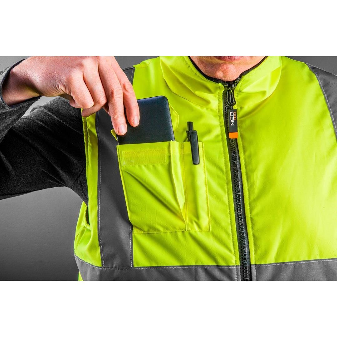 Vesta de lucru impremeabila, cu doua fete de la NEO, are vizibilitate ridicata si este o solutie practica care creste siguranta utilizatorului in timpul lucrului.