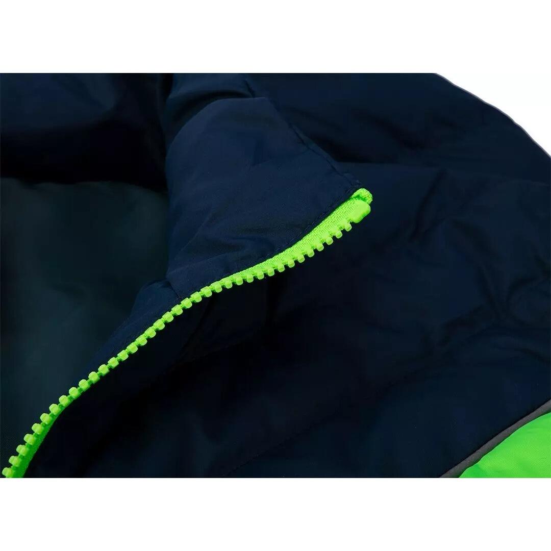 Vesta de lucru matlasata PREMIUM de la NEO are o combinatie moderna de albastru marin cu accente verzi.