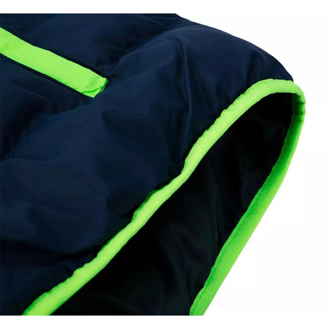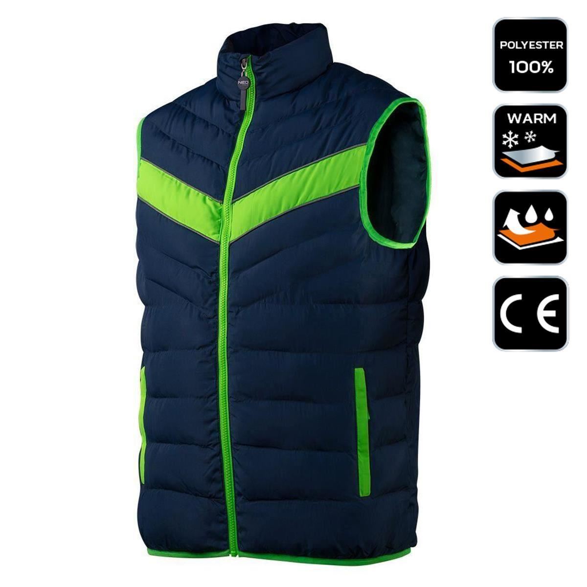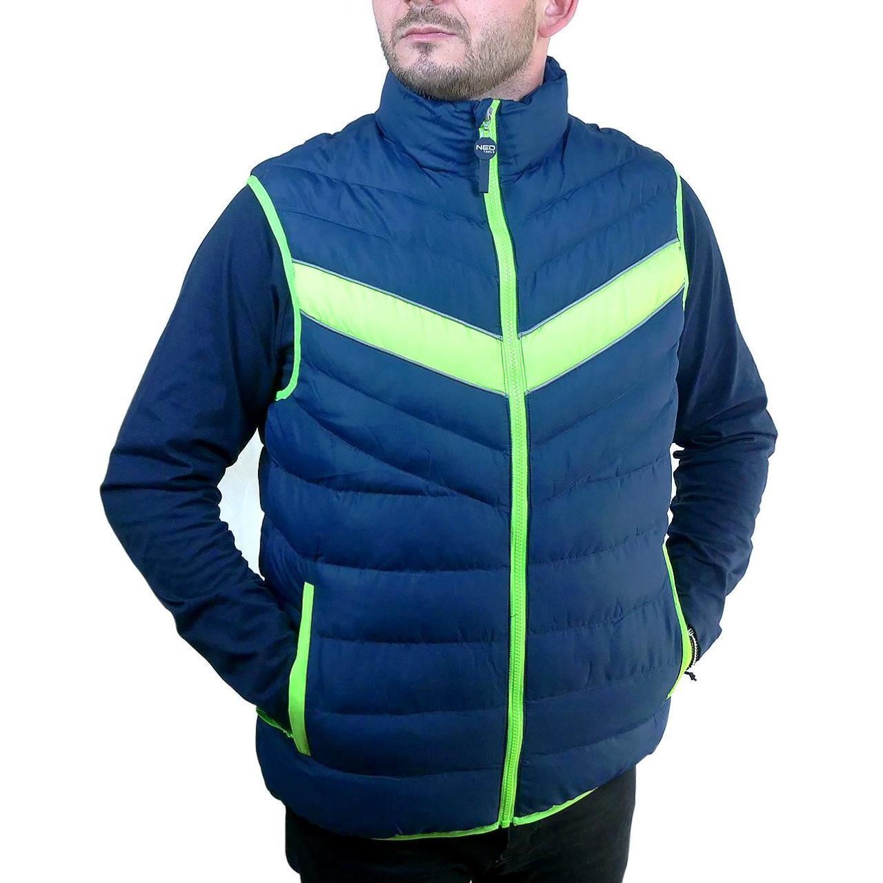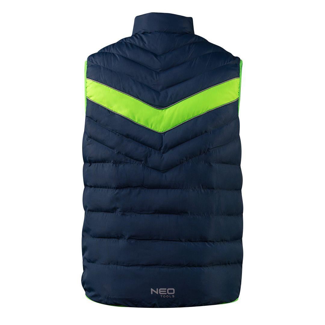 Vesta de lucru matlasata PREMIUM de la NEO are o combinatie moderna de albastru marin cu accente verzi.